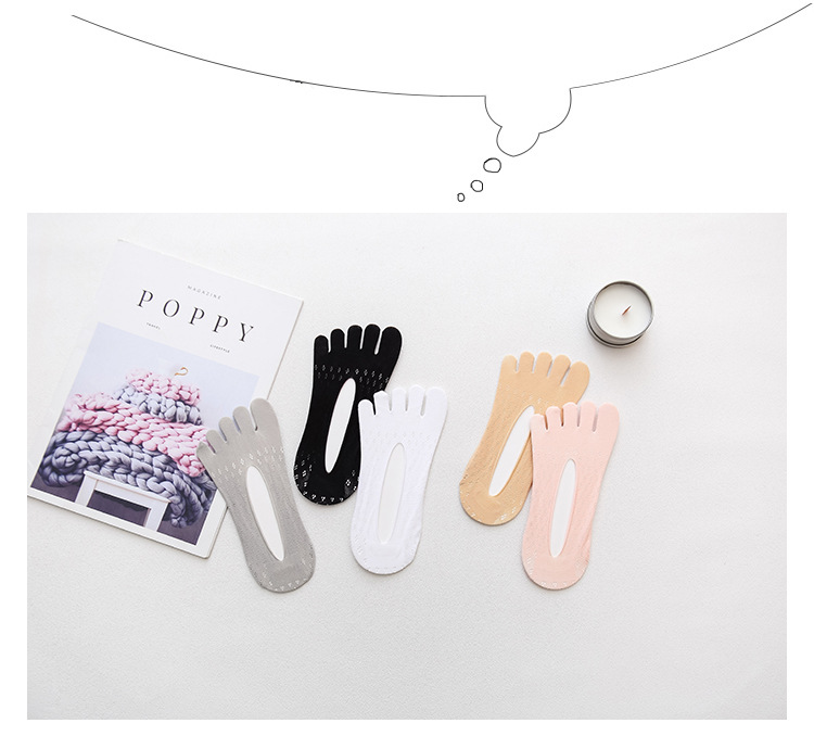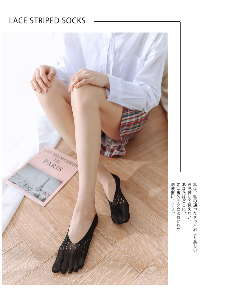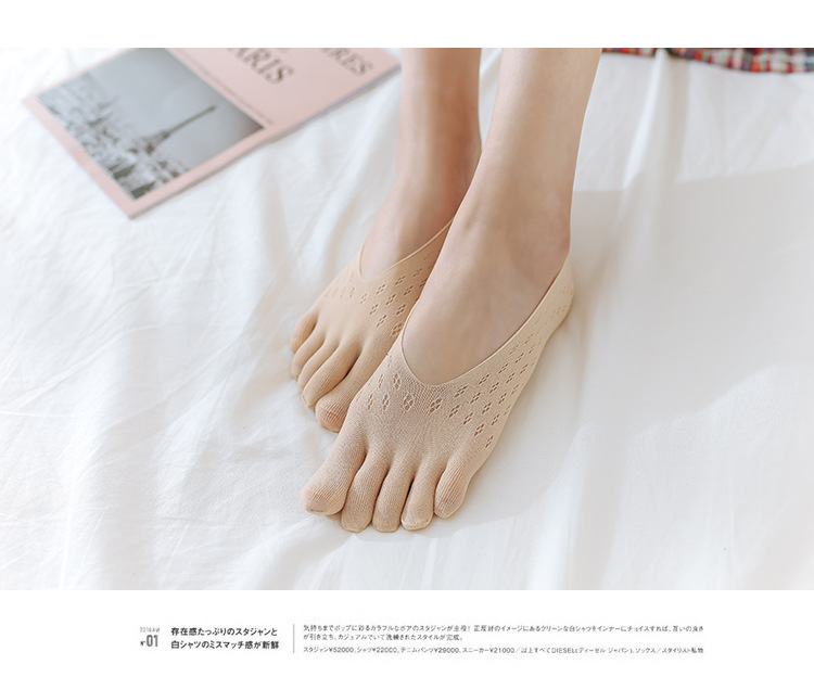 靴下の滑り止めと五本指の靴下の女性の夏の薄いタイプの指の浅い口のソックスの足の指の見えない靴下の夏