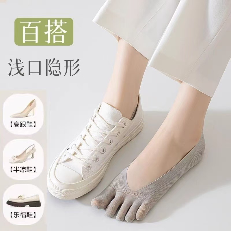 五本指ストッキングレディース夏薄手梅メッシュ通気ステルスパンプス靴下かかとシリコン指ソックス