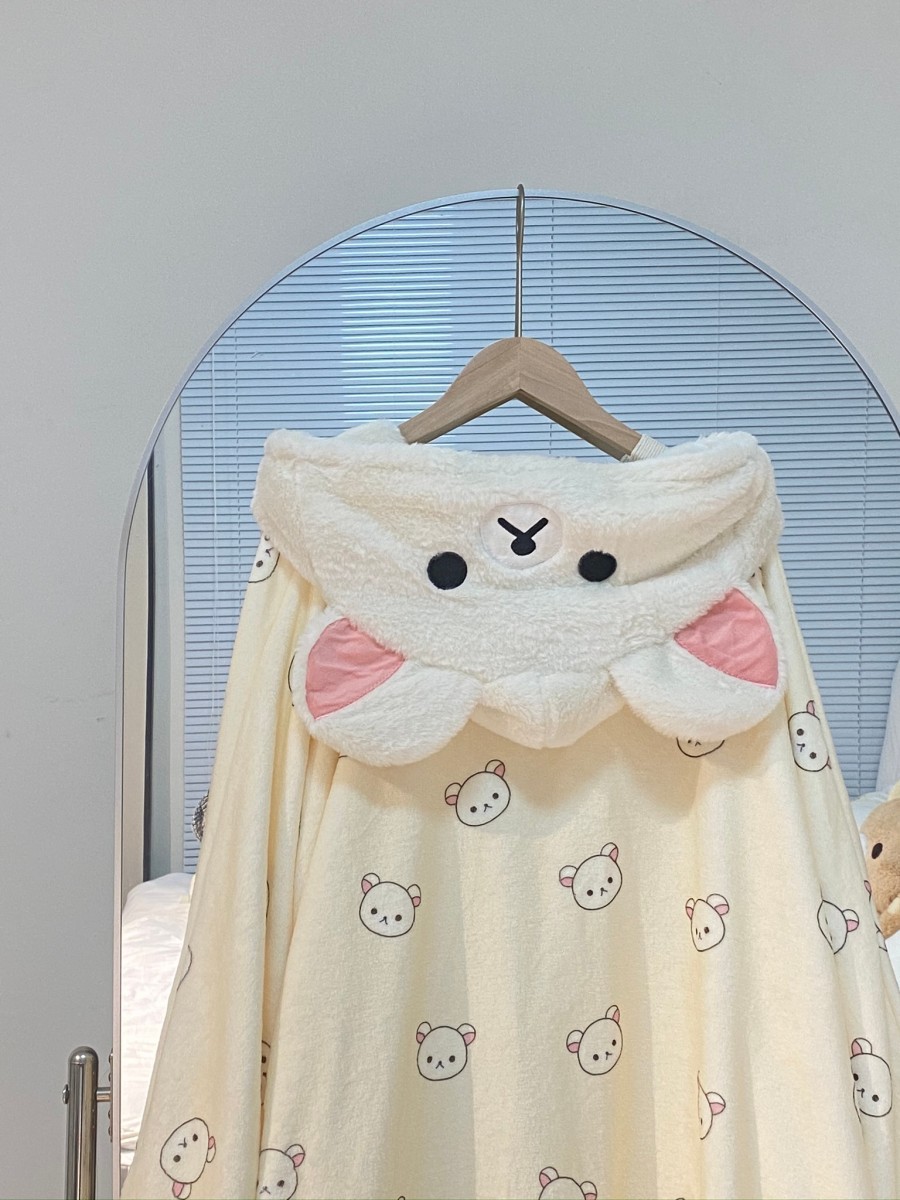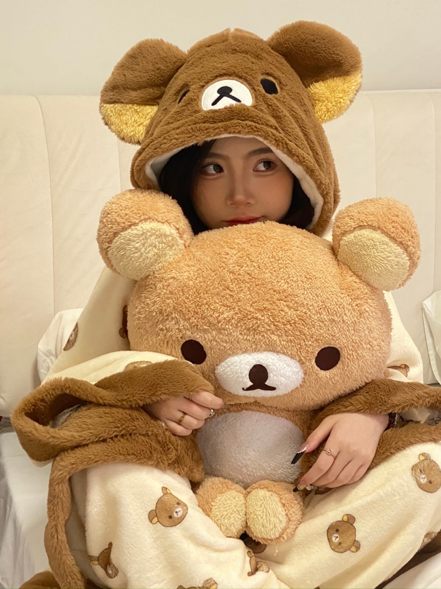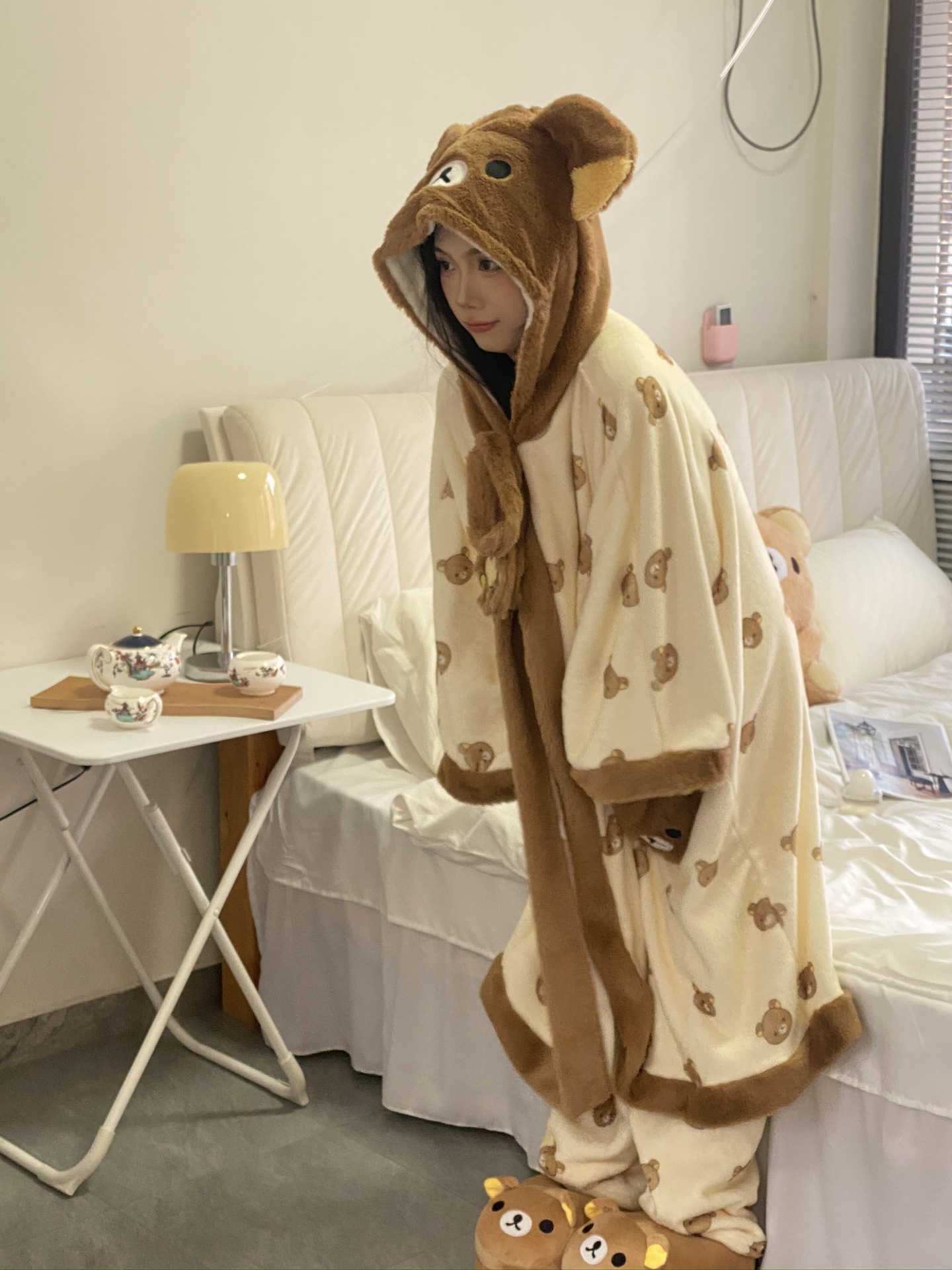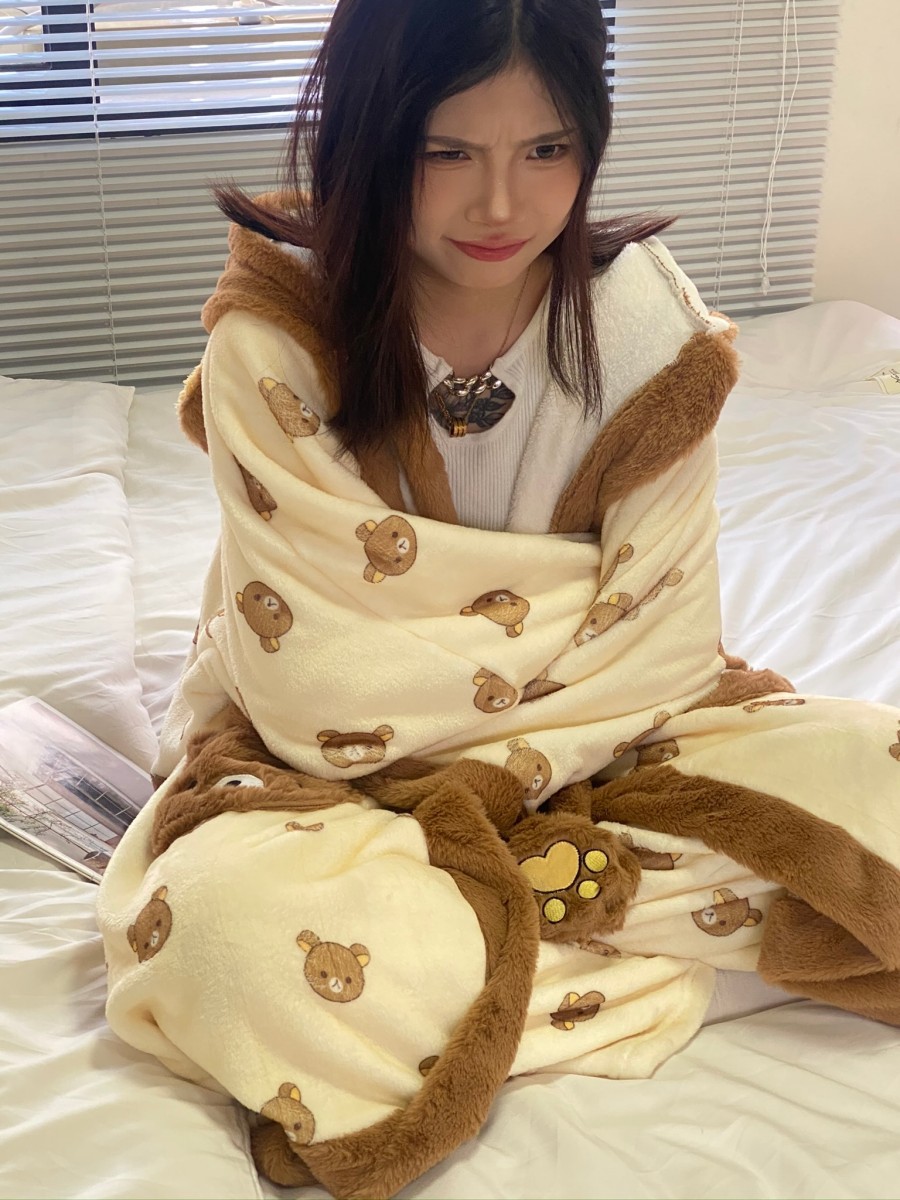 暖呼呼轻松熊斗篷睡衣套装2025春季新款可爱软萌保暖家居服午睡毯