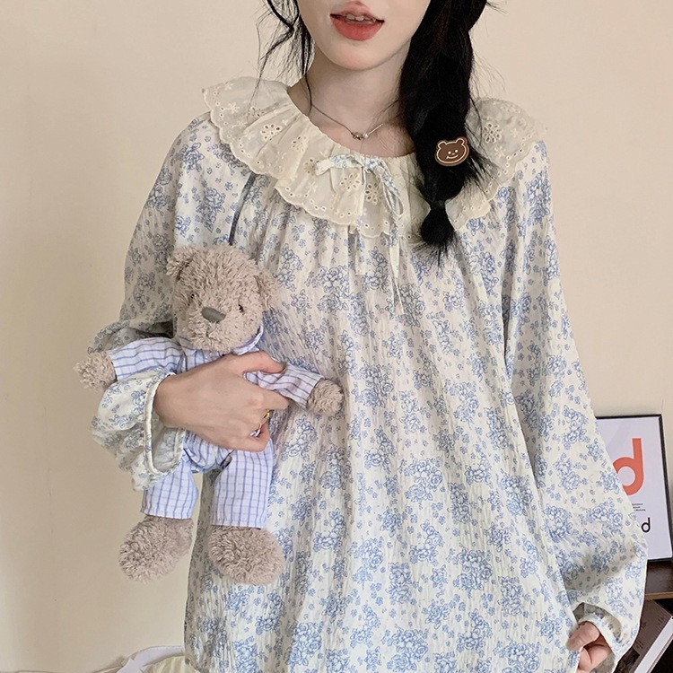 碎花法式睡衣女新款蕾丝花边蝴蝶结春秋季长袖长裤学生家居服套装