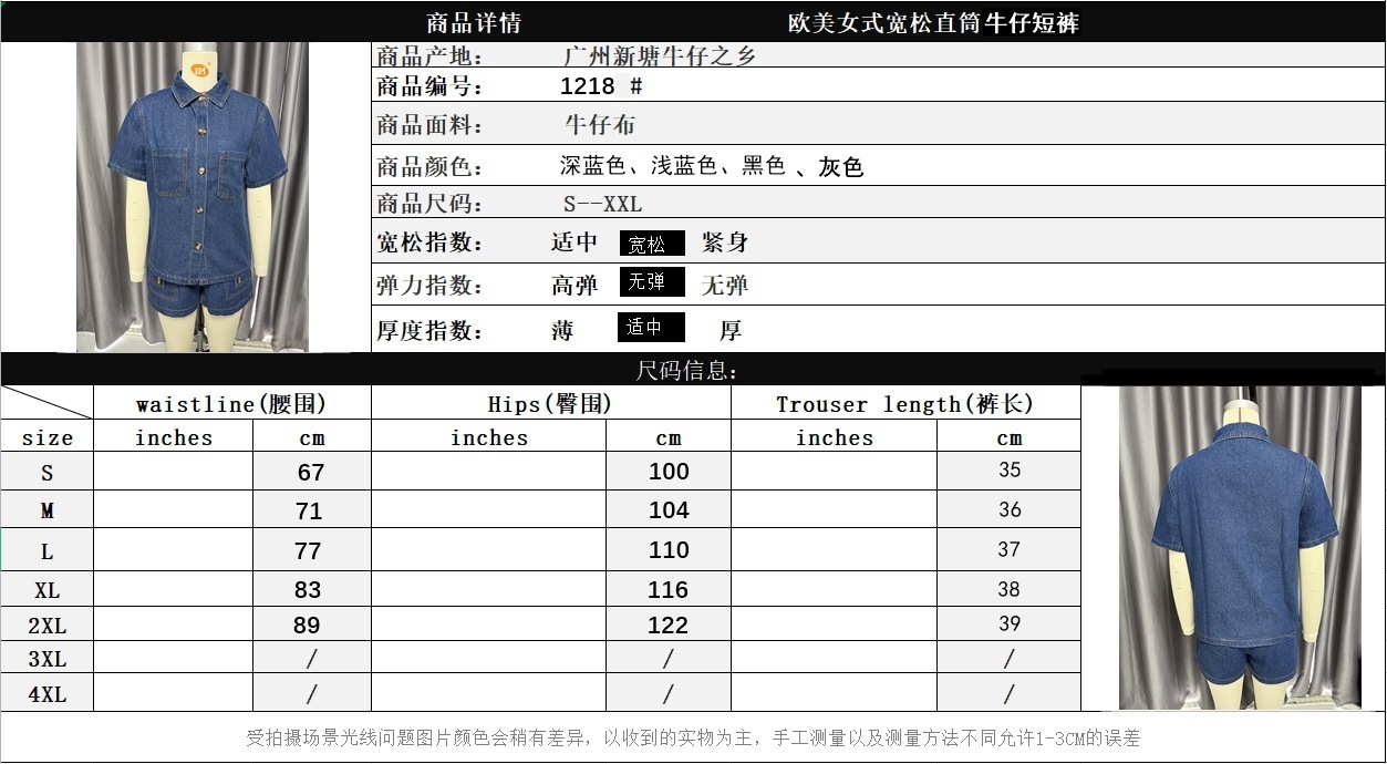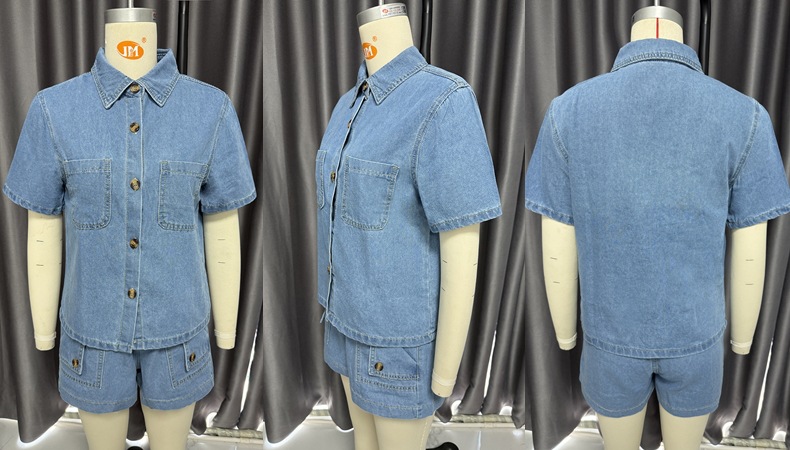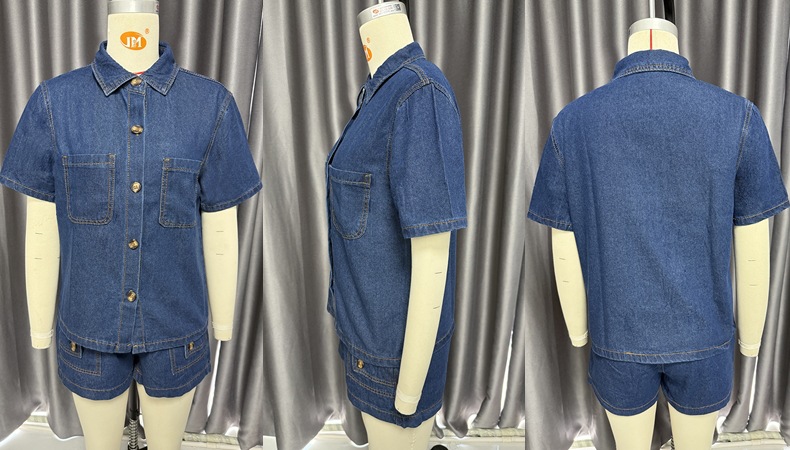 デニムの半ズボンのスーツの女性2025夏の新型の半袖のシャツのカジュアルでシンプルな薄いデニムのスーツの2つのセット