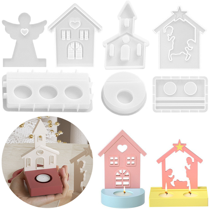 エンジェルハウスインサートオーナメント樹脂シリコンモールド接着剤diy正方形ラウンドダブルカードスロット石膏キャンドルホルダー