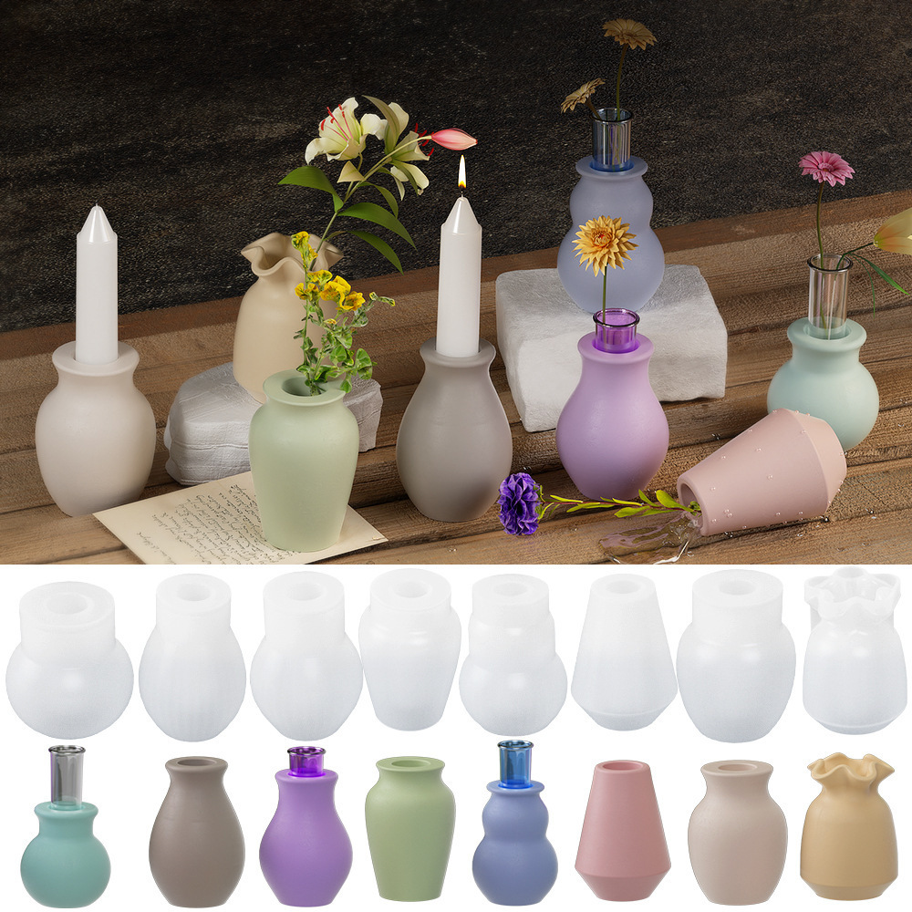 虞美人DIY水晶滴ゴム樹脂試験管花瓶石膏セメントレース丸口ろうそく台シリカゲル金型