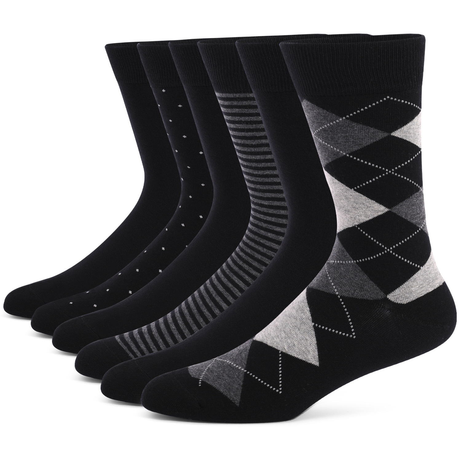跨境亚马逊大码袜子47男士长筒商务款绅士袜条纹黑色长筒菱形美式