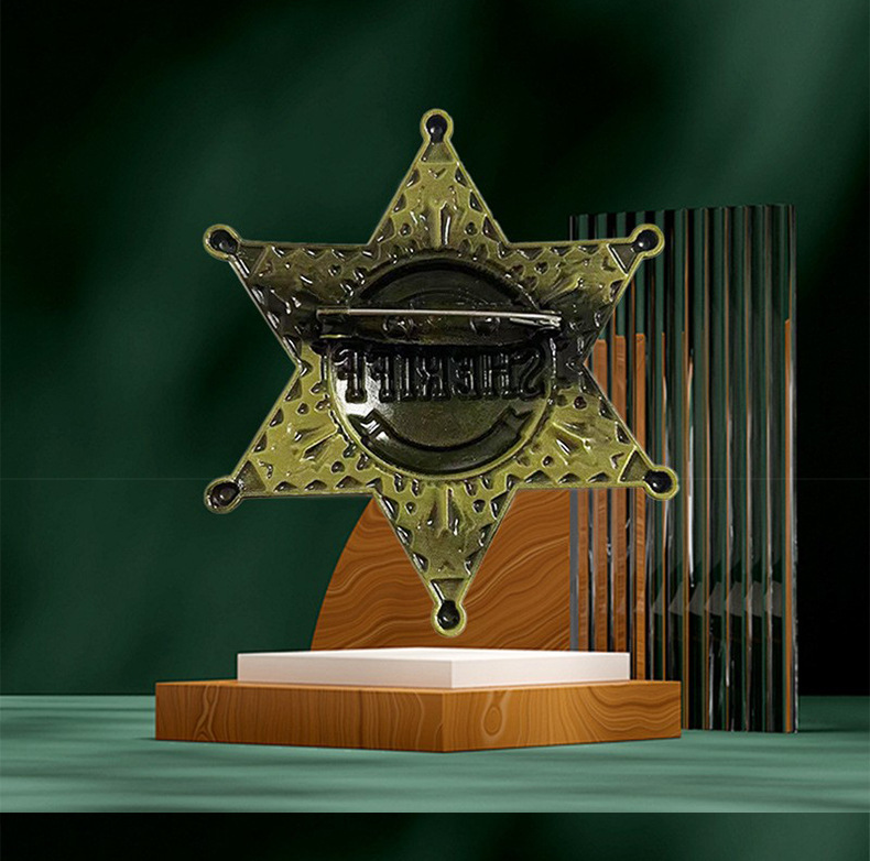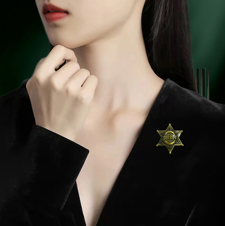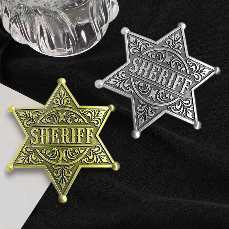 国境を越えて人気のクリスマスブローチ、アメリカ保安官六芒星ピンバッジ「SHERIFF」名誉、創造的で精巧なバッジ