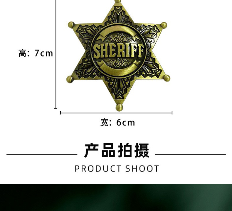 跨境新品美国警长胸针创意治安官SHERIFF别针时尚六角星复古徽章