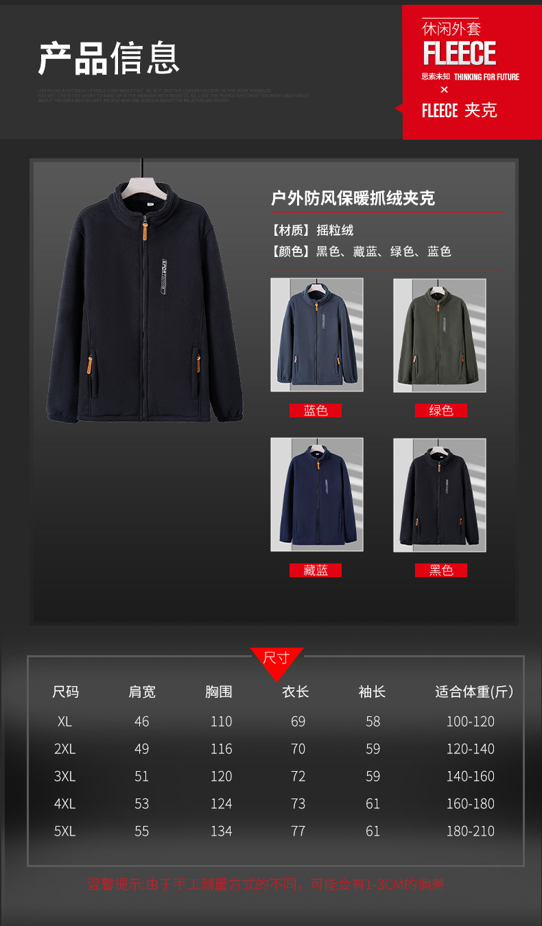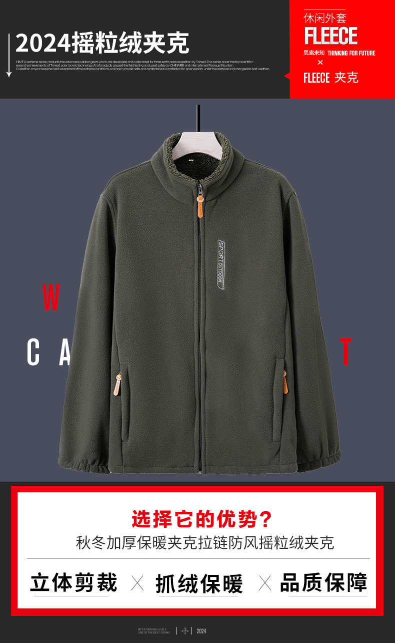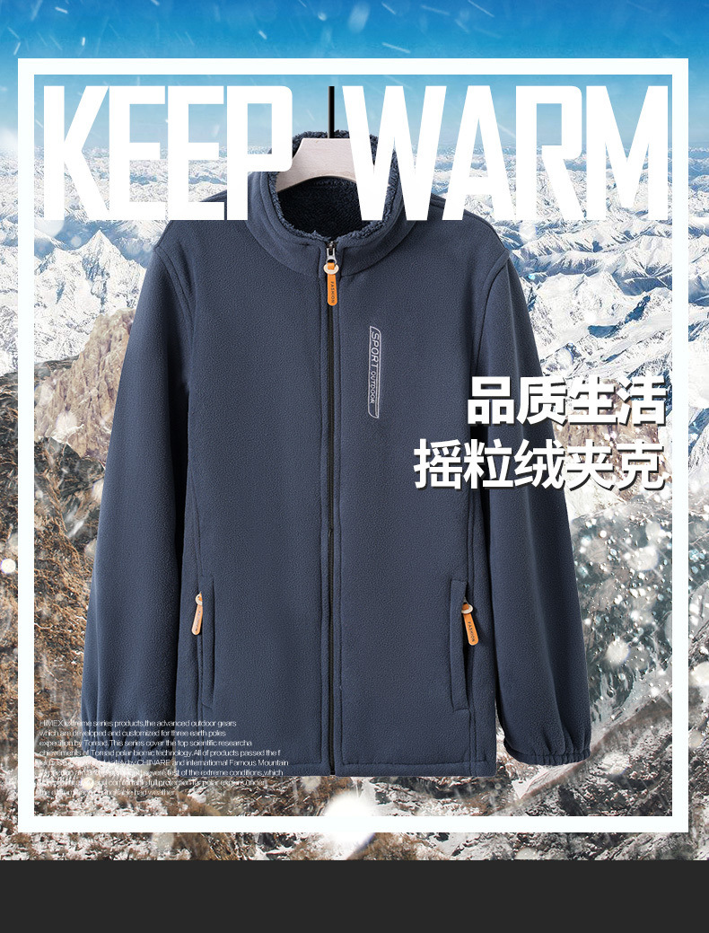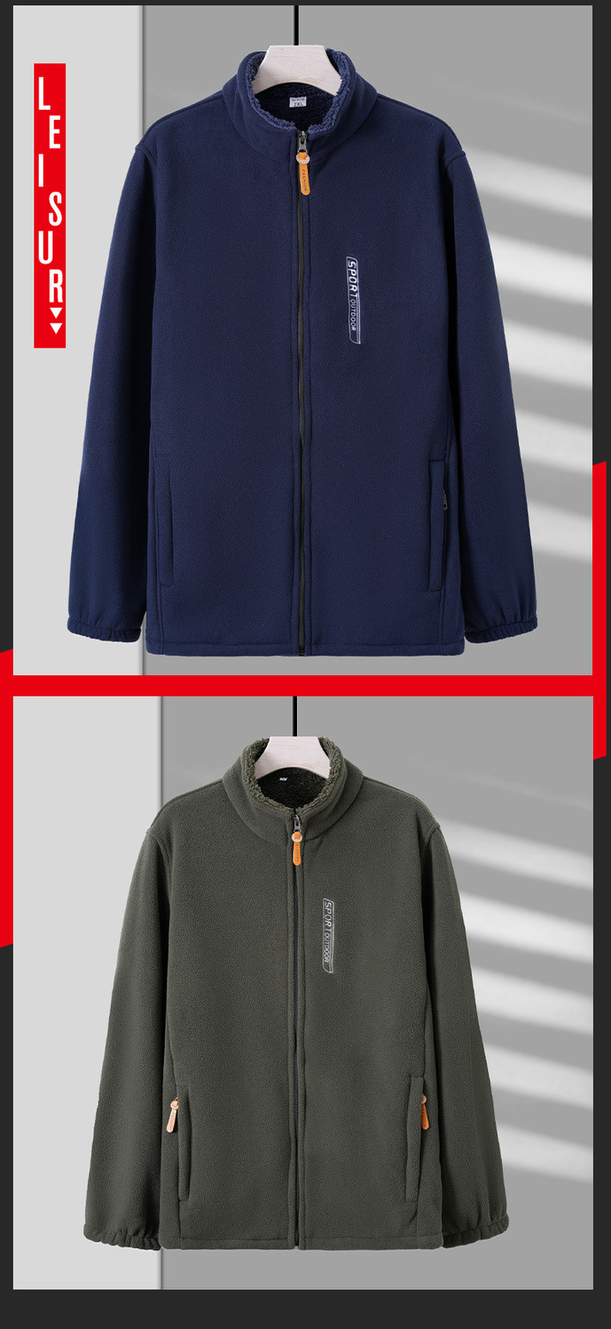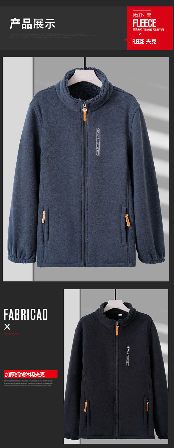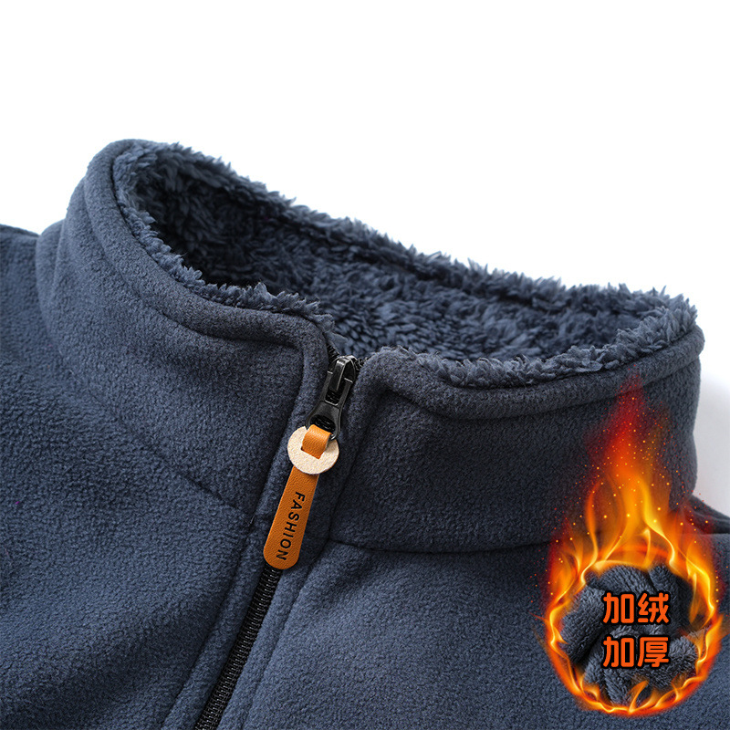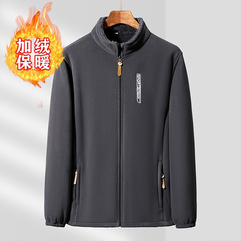 秋冬メンズ裏起毛厚手ジャケット、ポーラーフリース、スタンドカラー、ゆったりジャケット、大きいサイズ、万能フリース、卸売