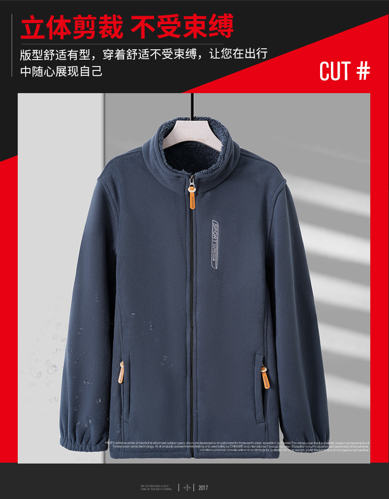 メンズポーラーフリースジャケット、秋冬用厚手両面フリースジャケット、インナーフリース付きメンズスウェット、カーディガン、アウトドアフリースジャケット工場
