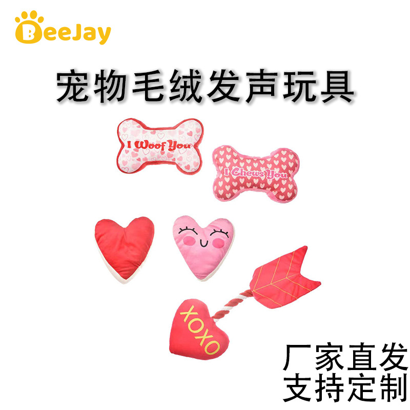 新しいバレンタインデーシリーズの犬のぬいぐるみペットの音のおもちゃは歯を清潔にしてbbを噛むことに耐えます。