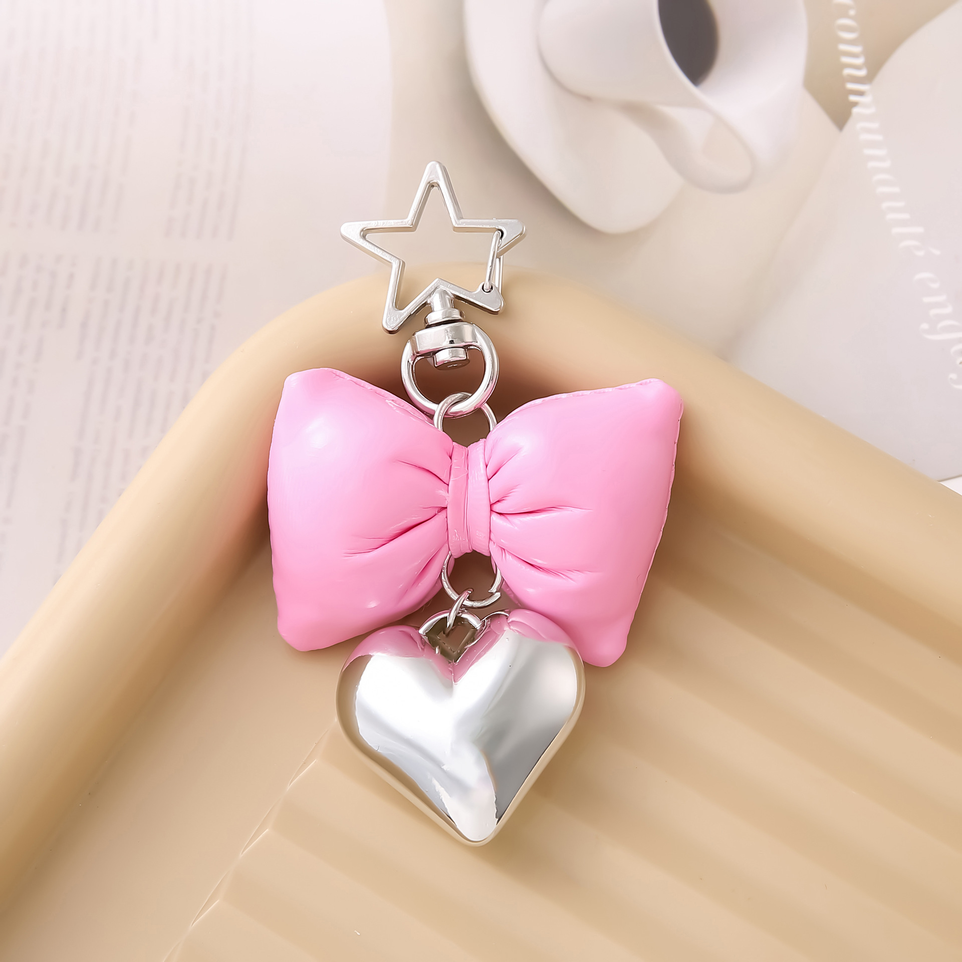 蝶結びのハート型ペンダント、個性的で多用途な五芒星型の飾り、バッグや鍵のチェーン、漫画風キーホルダー
