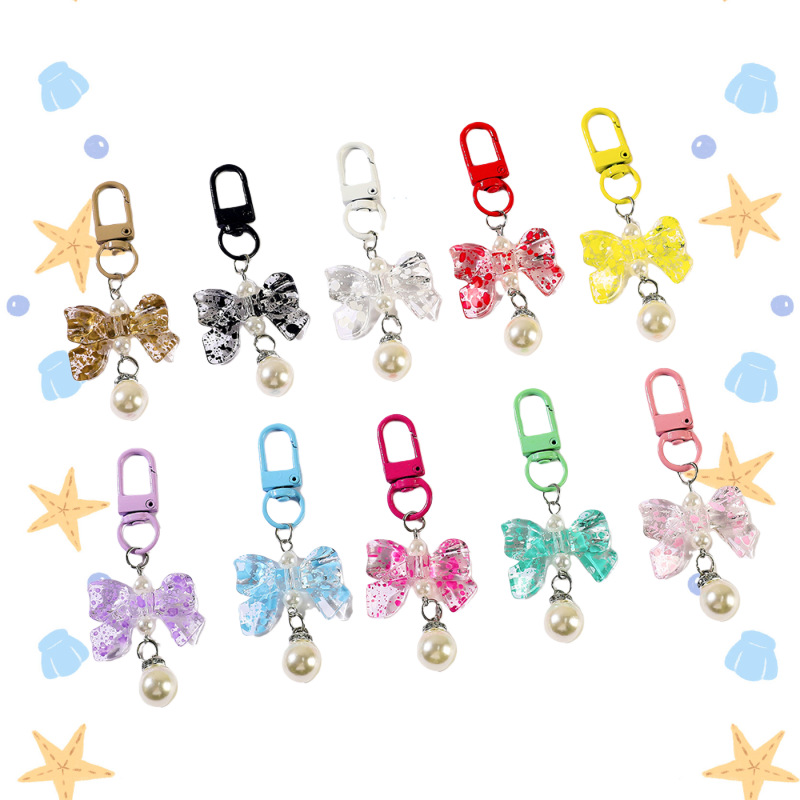 亚克力糖果色蝴蝶结珍珠吊坠手机配饰耳机包包挂件饰品配件领结彩