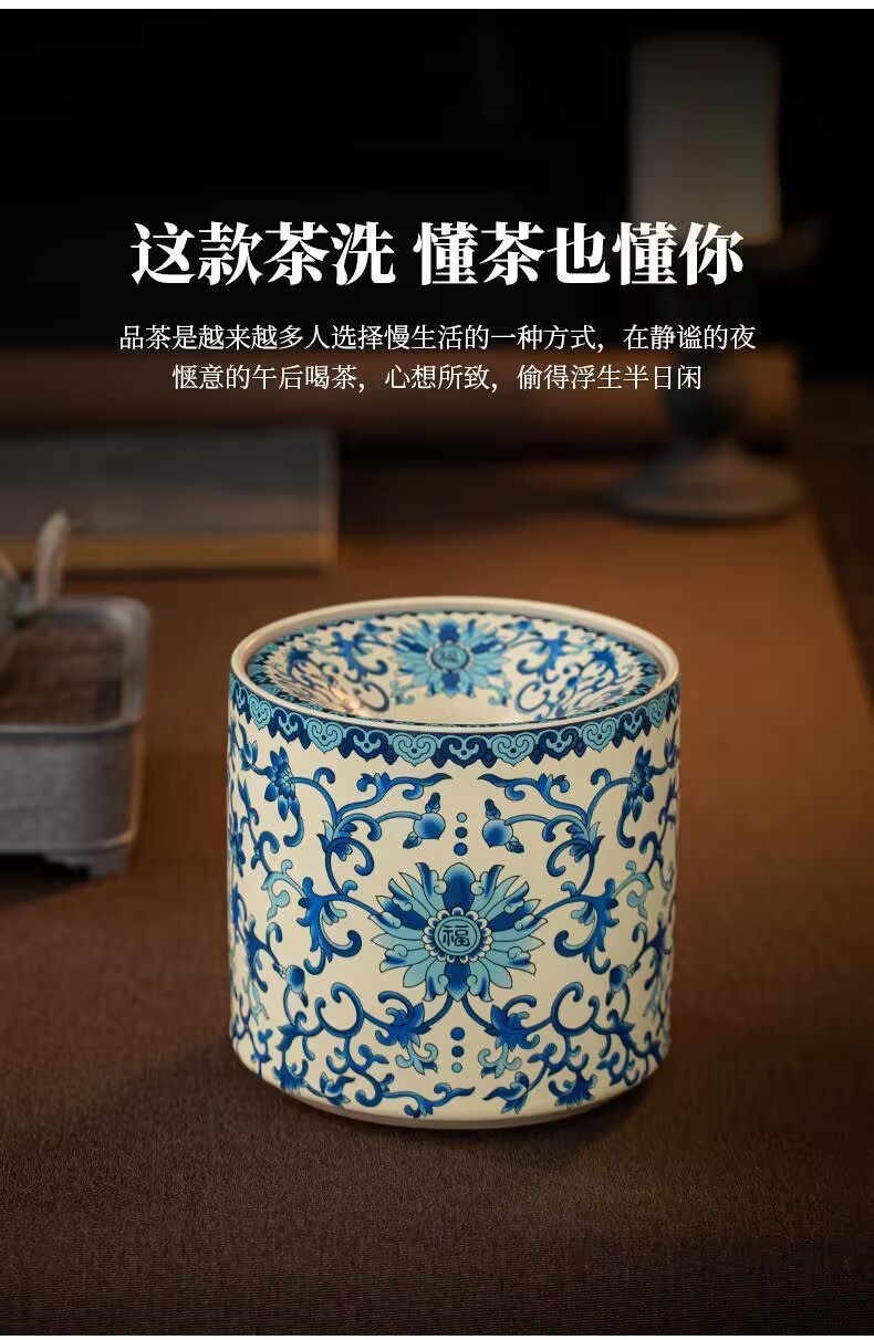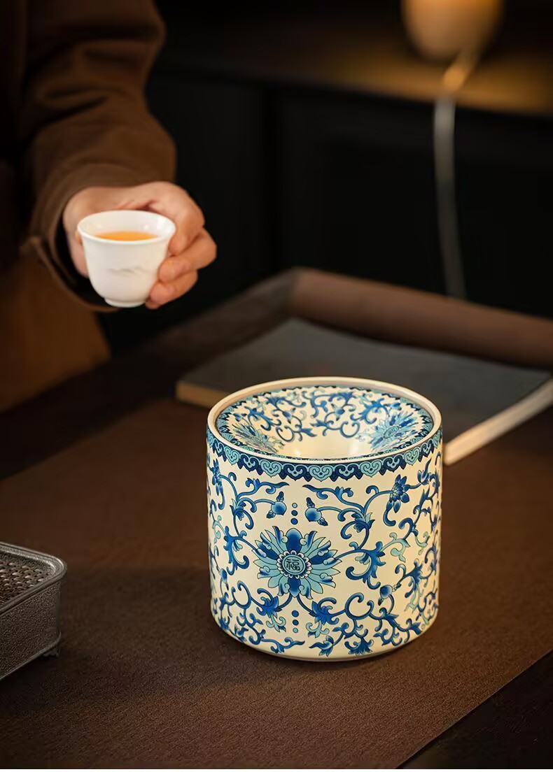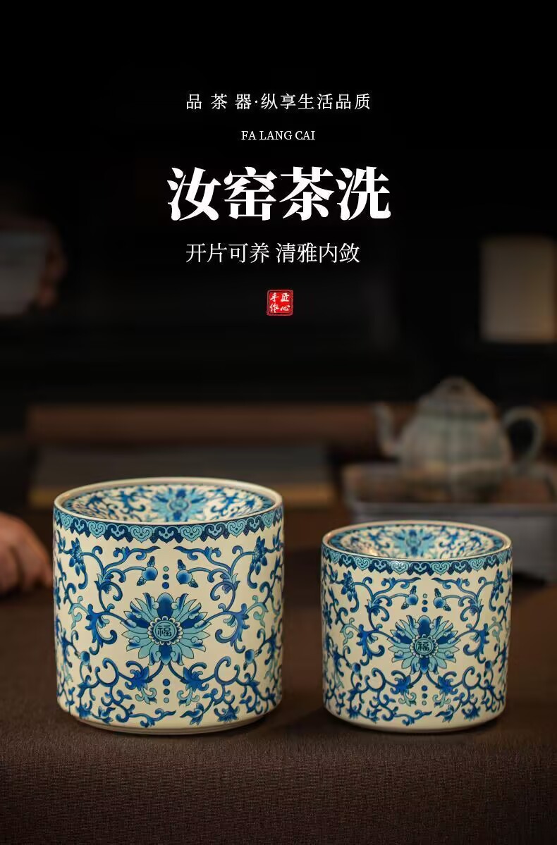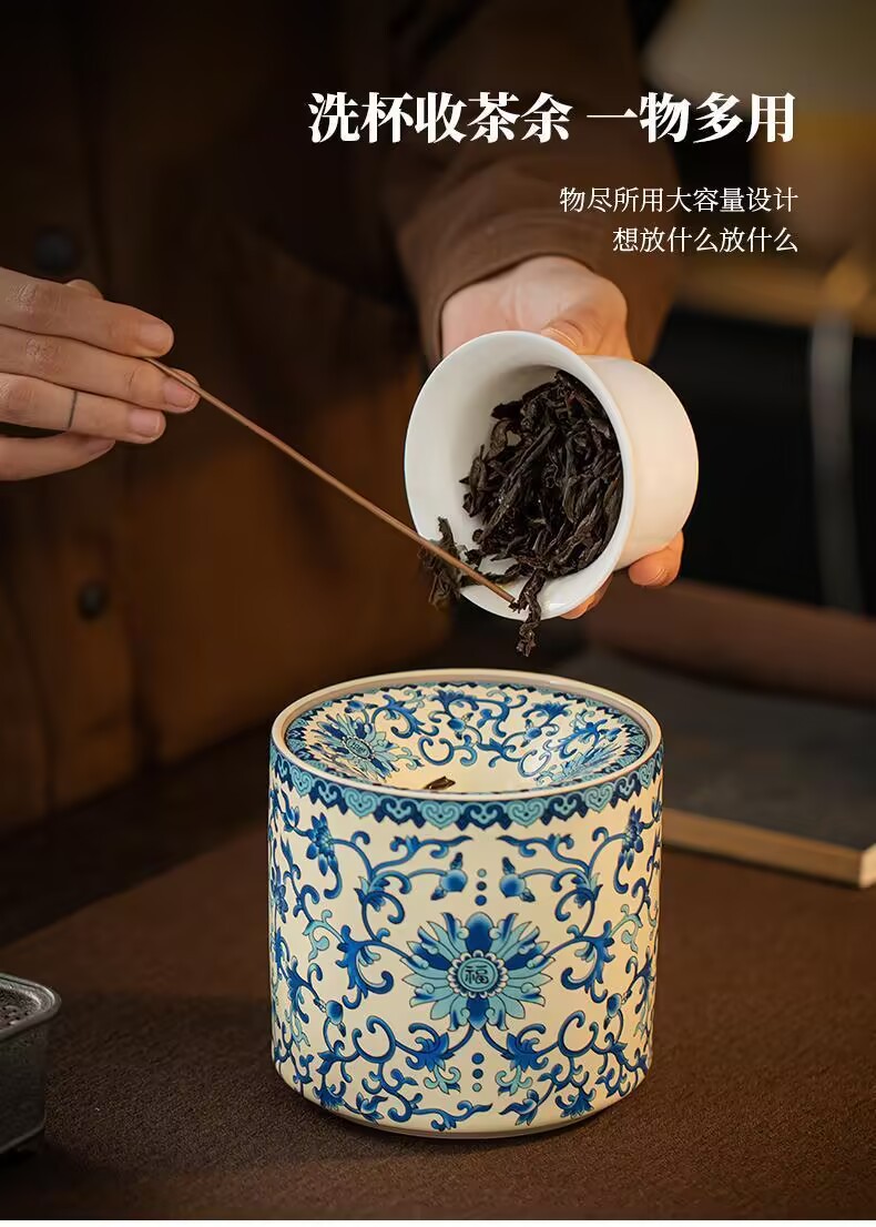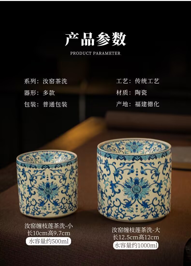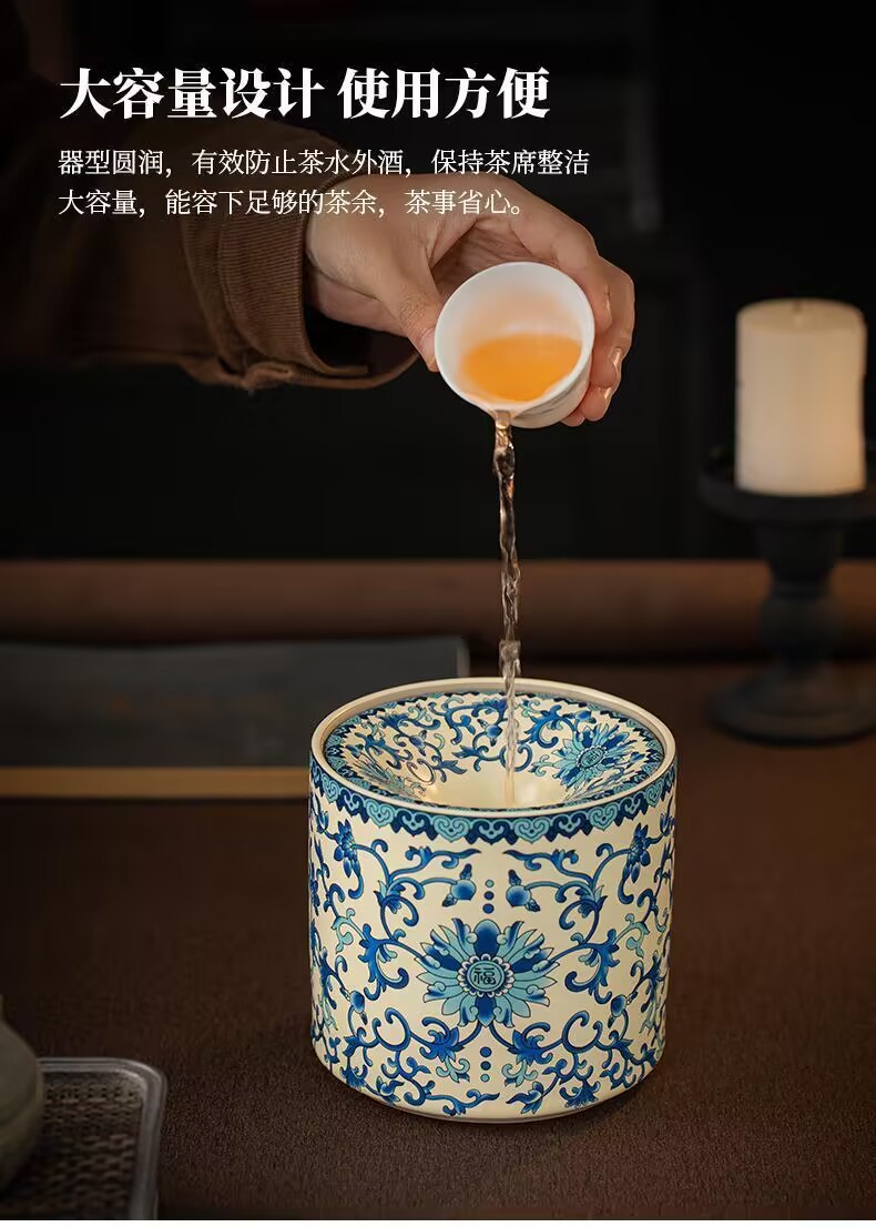 汝窑敦煌家用高档轻奢陶瓷功夫茶缸桌面小号废水收纳建水漏斗水盂
