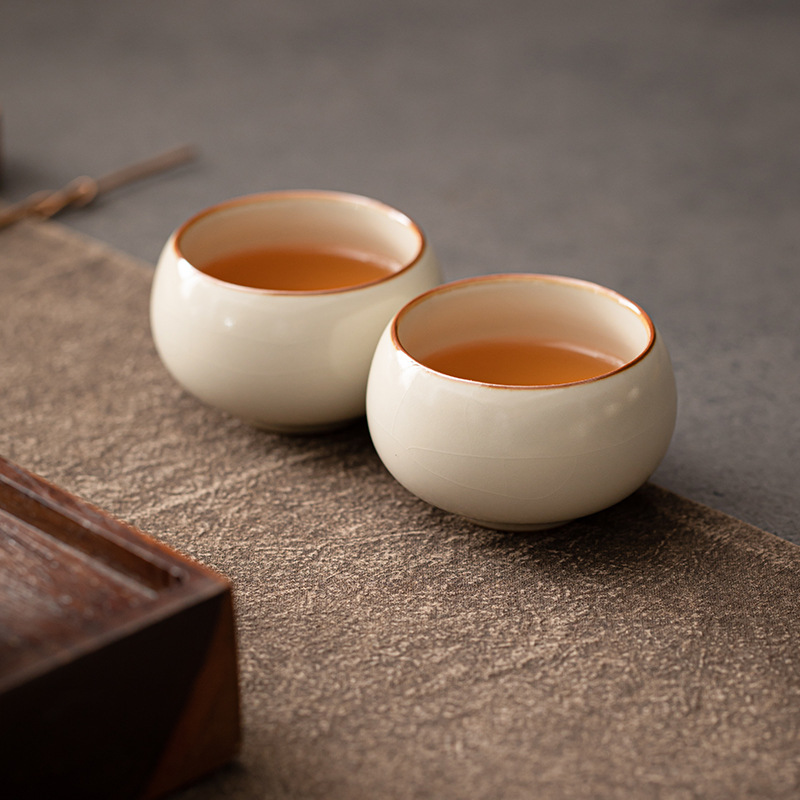 米黄汝窯陶磁器カップ家庭用シンプルな主人杯羅漢単杯個人専用茶器工夫品茗杯