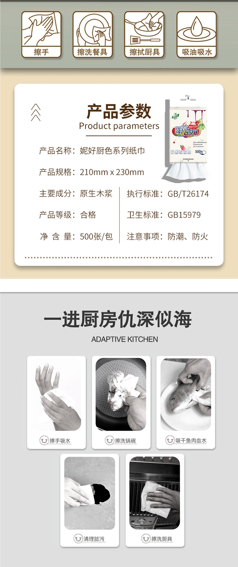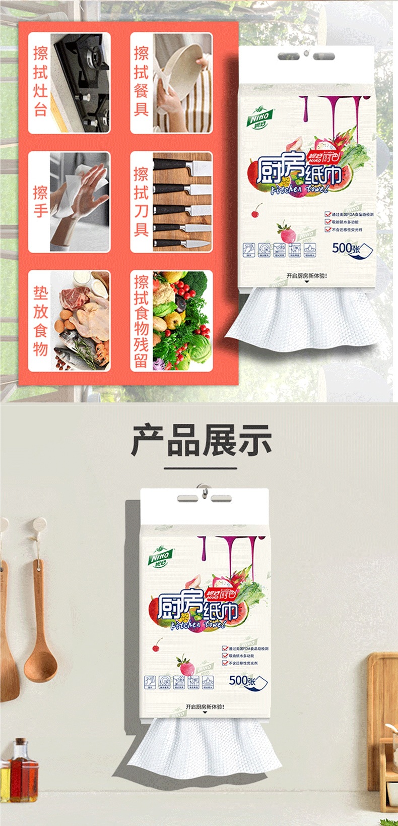 ニコールキッチンティッシュ500大吊り式吸油吸水キッチン紙拭きトイレットペーパー乾湿両用