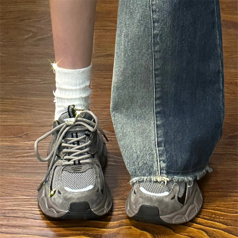 ヨーロッパステーション本革 2025 新しい通気性と多用途レースアッププラットフォームメッシュ厚底お父さん靴女性のスポーツカジュアルシューズ