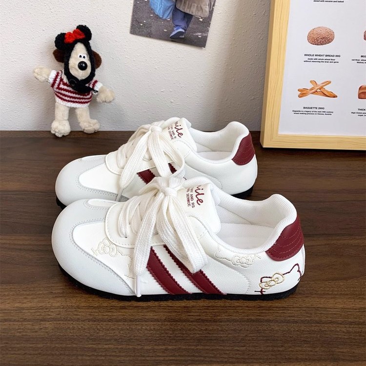 かわいいkt猫刺繍シュークリーム靴女性徳訓靴2025新型韓系chi百合板靴カジュアル白靴