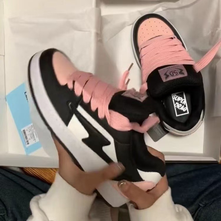 オリジナルブラックピンクレタリングソールシューズ レディース インス風シューズ キャンパススタイル カジュアル ニッチ スケートシューズ ローカット