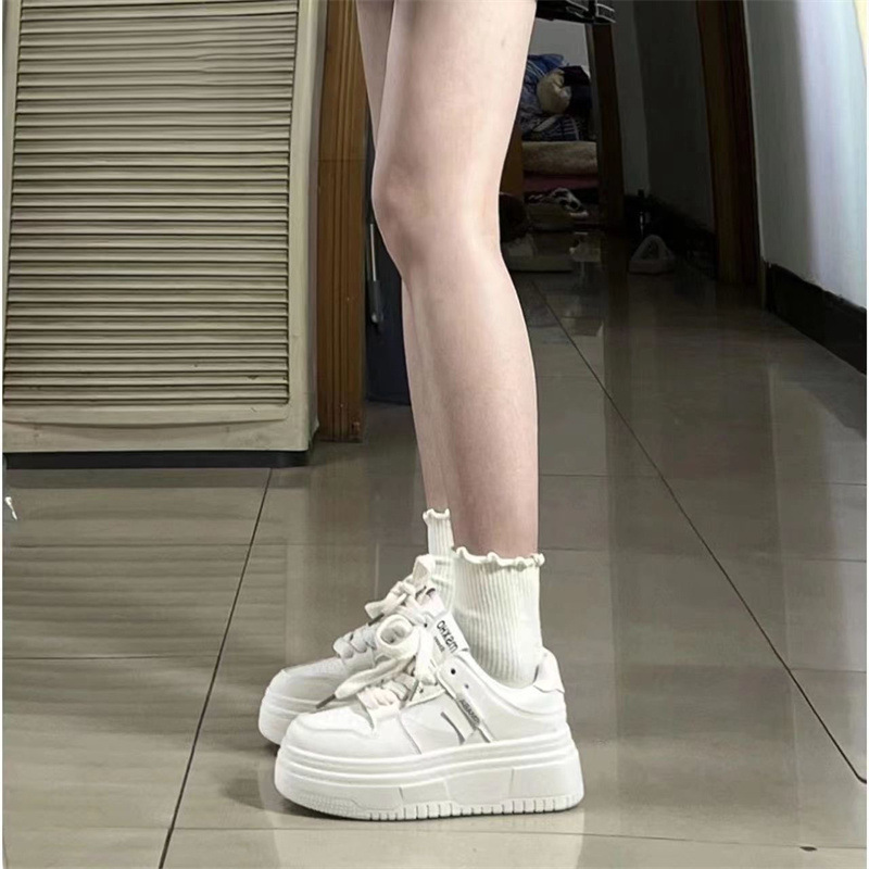 チュ婧祓い同金 ~ 6cm高級感白靴女2024春秋新厚い底百合キャンパス運動板靴