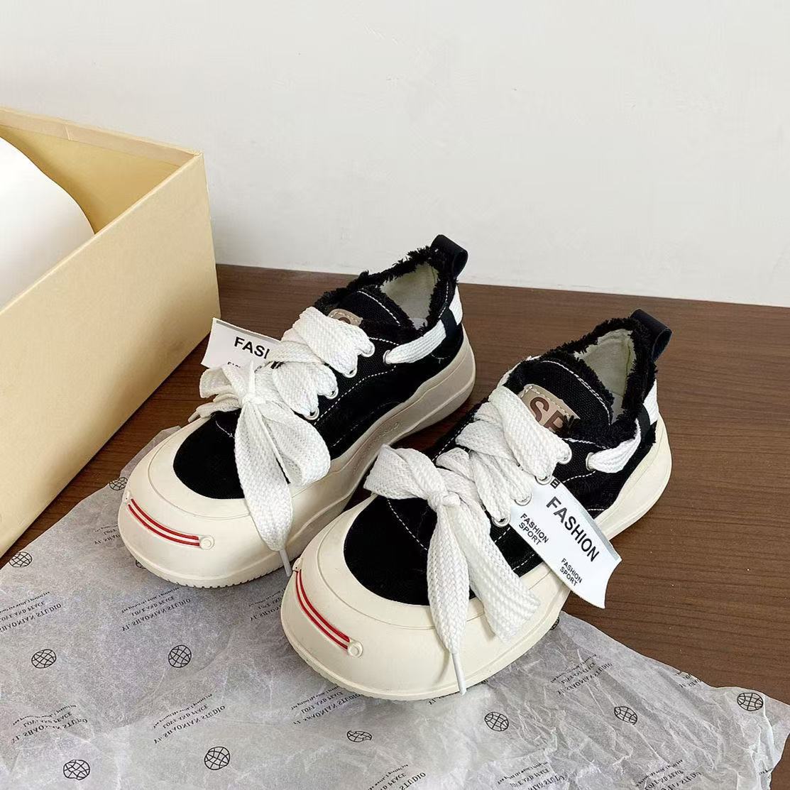 趙露思同金の大衆デザインの丸い頭が笑っているスニーカーの女性2024の新しい厚い底のカジュアルな靴