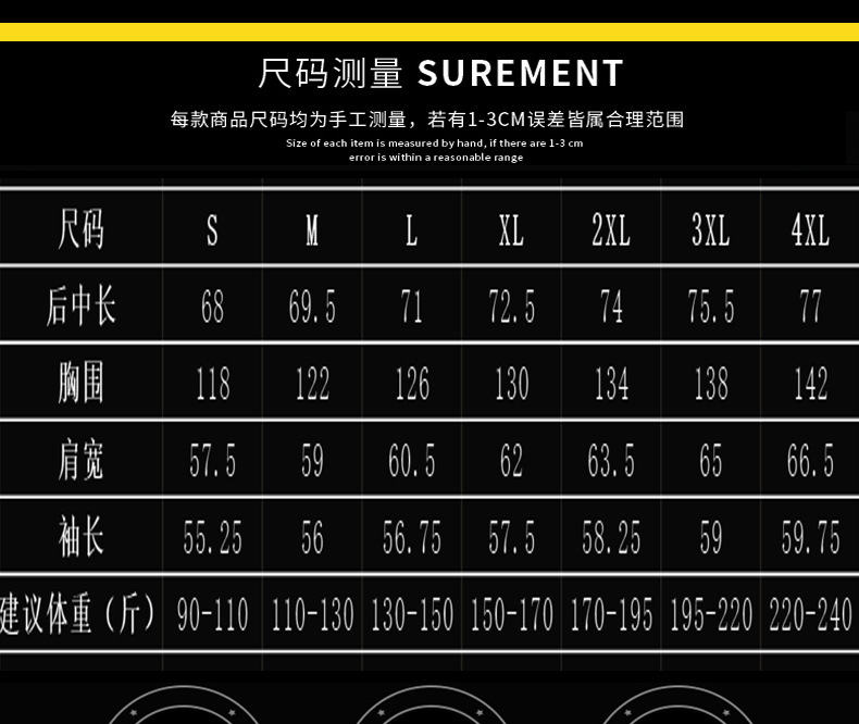 S 90— 55kg に適合,M 110— 65kg に適しています,L 130— 75kg に適合,XL 150— 85kg に適合,2XL は 170— 95kg に適しています,3XL は 190 ~ 105kg に適しています,4XL は 210— 115kg に適合します