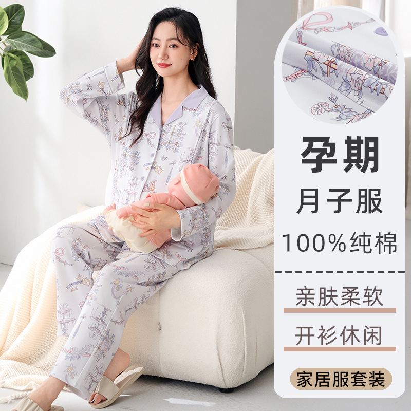 月子服睡衣女春秋长袖纯棉开衫孕妇哺乳产后新款可外穿家居服套装