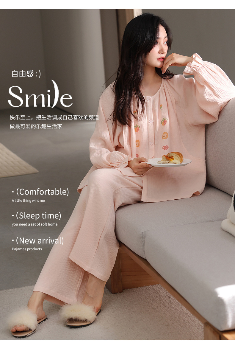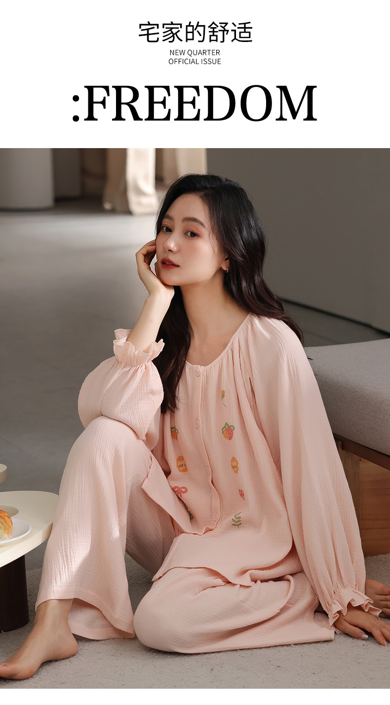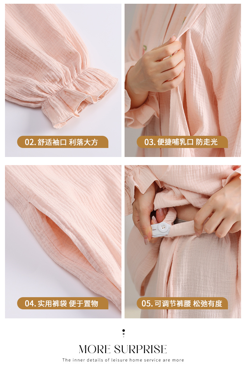 純綿ガーゼ産後服春と秋の長袖授乳マタニティパジャマ薄いホーム服セット夏