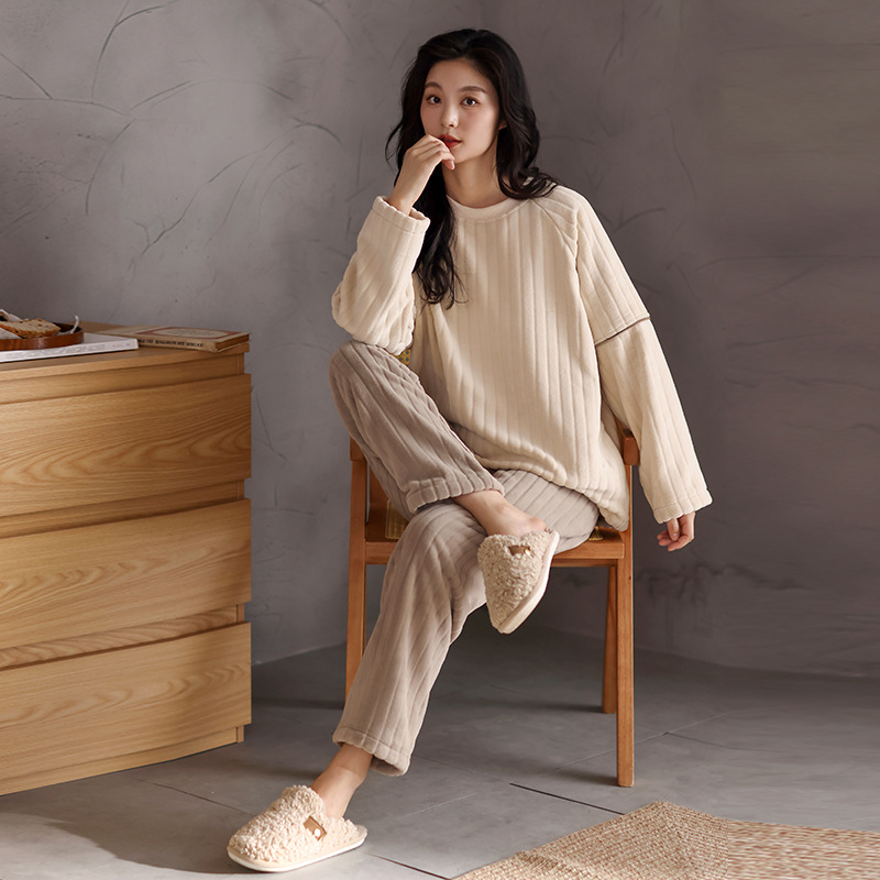 批发睡衣女冬季德绒开衫防寒保暖加厚简约休闲2025新款家居服套装