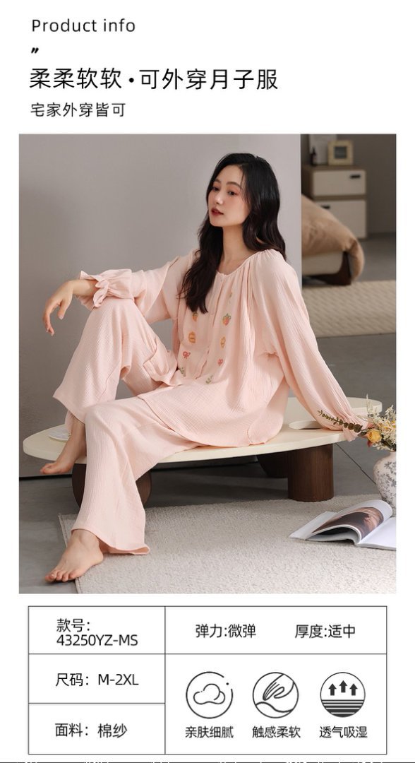 批发月子服孕妇睡衣女纯棉纱布2025新款产后喂奶哺乳家居服两件套