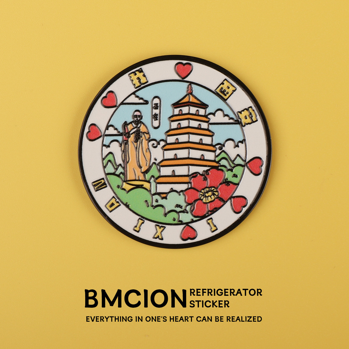 西安市観光文創円形金属冷蔵庫貼付旅行記念品マグネット冷蔵庫貼付