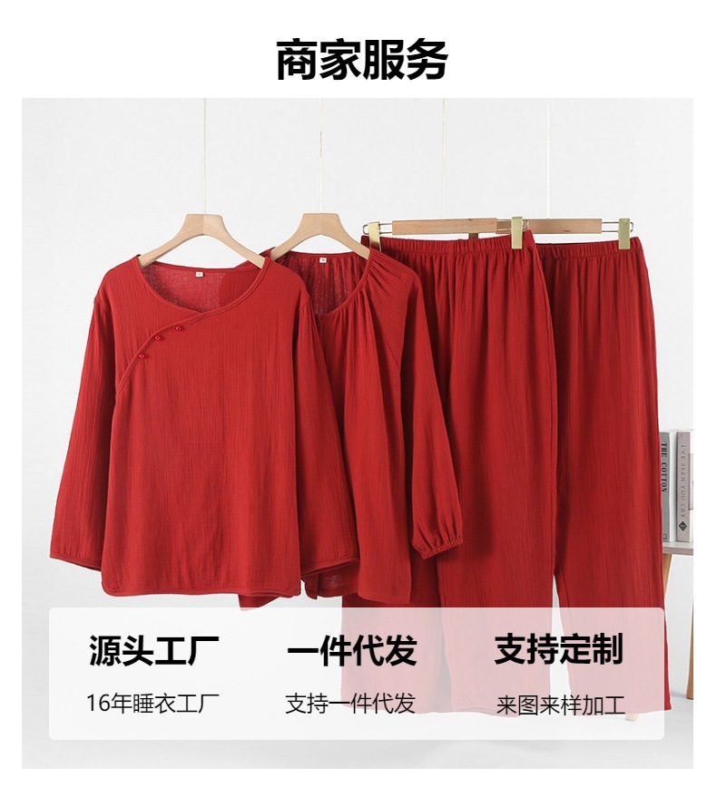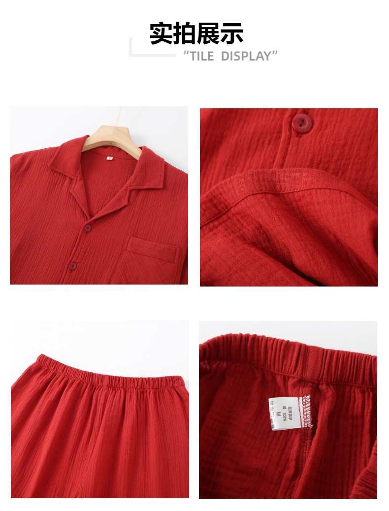新年の赤いパジャマ、女性カップル用、純綿二重ガーゼ、ホームウェア、春秋、長袖、長ズボンセット、お祝いホームウェア