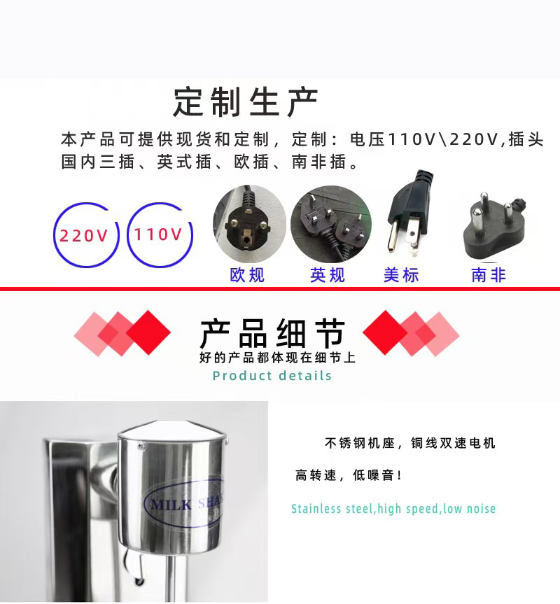 家庭用商用ステンレス220vミルク昔機ミルクティーミキサーミルク泡ミキサーカクテルミキサー