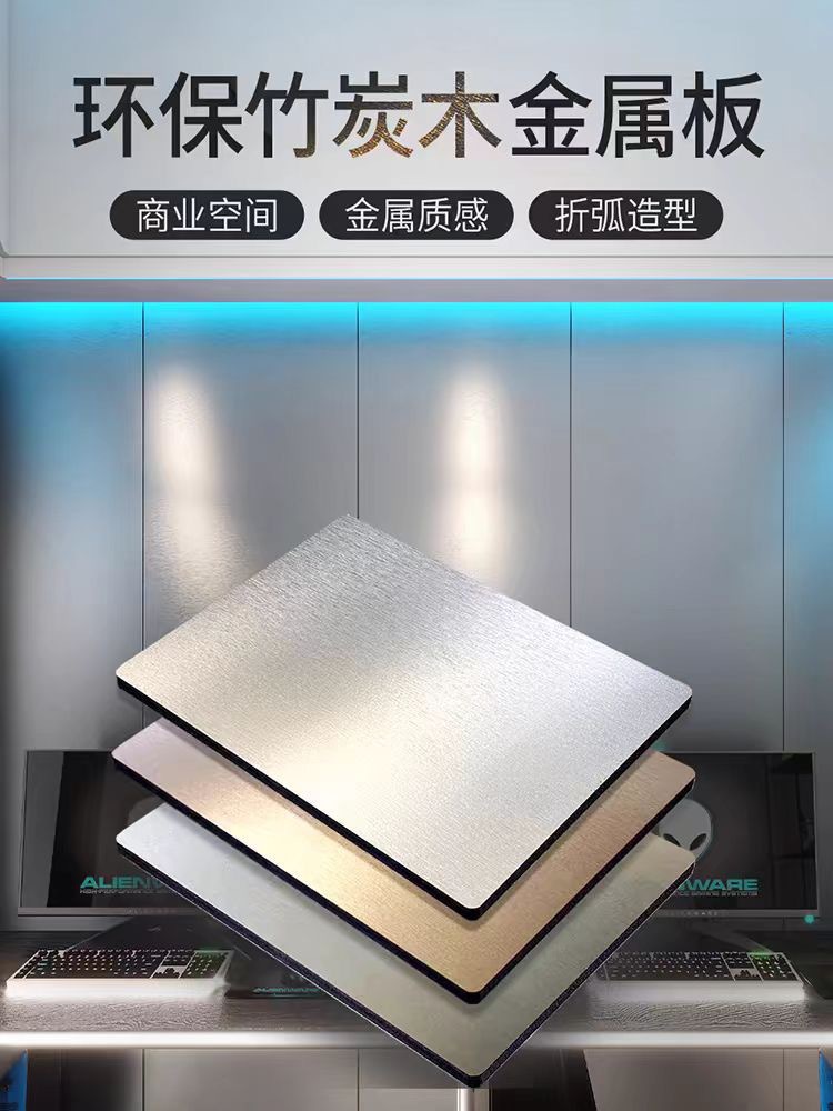 金属饰面板竹炭木金属板碳晶板护墙板pet装饰拉丝碳金木饰面墙板