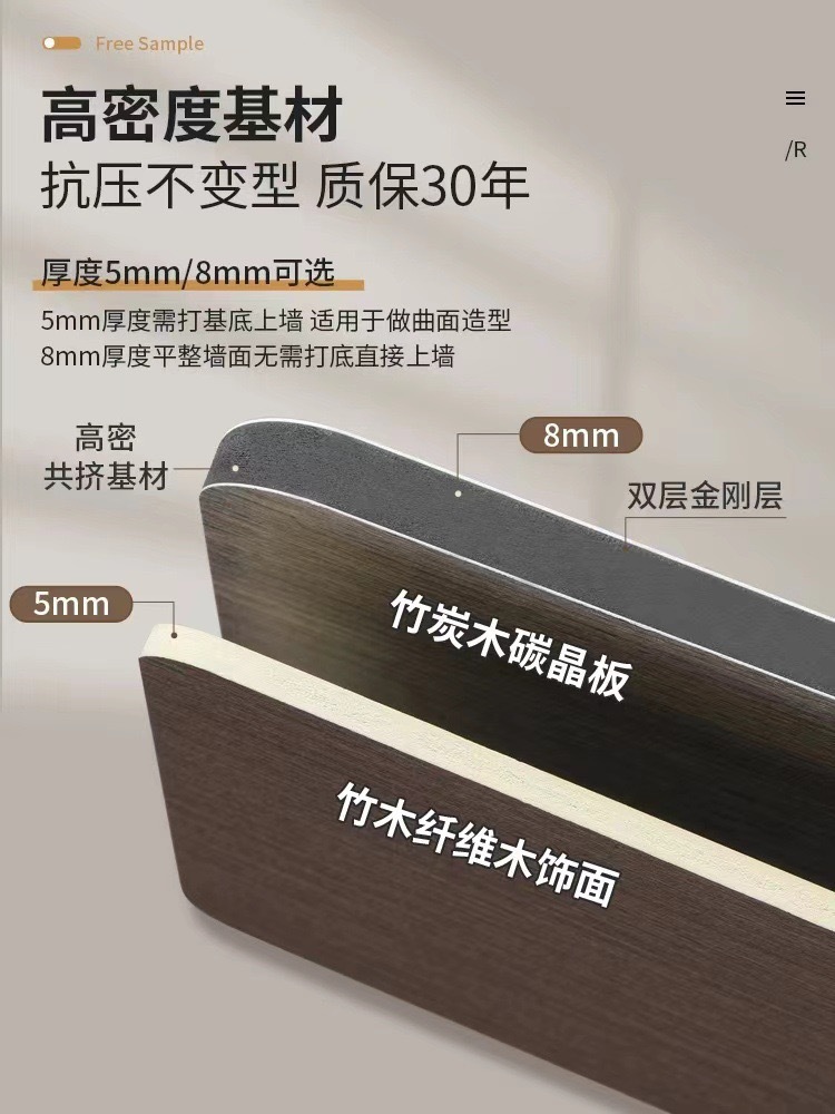 カーボンクリスタルパネル、PET耐衝撃パネル、木製装飾パネル、竹炭繊維、ステンレス鏡面、金属木製装飾壁板