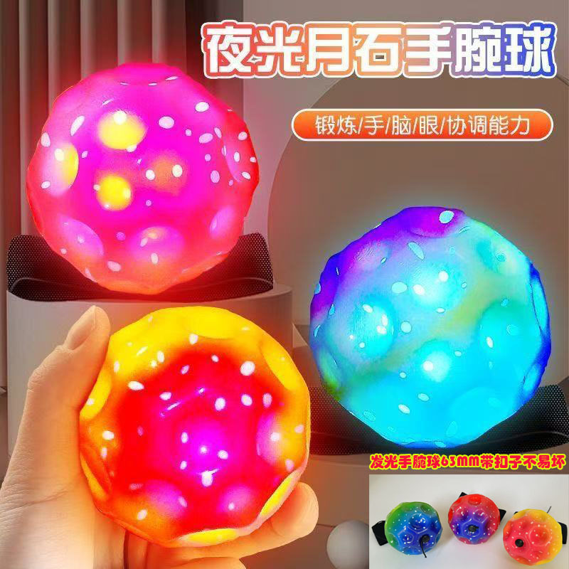 月球石手腕弹力球儿童带绳玩具蹦蹦球回力弹弹球腕力球健身甩甩球