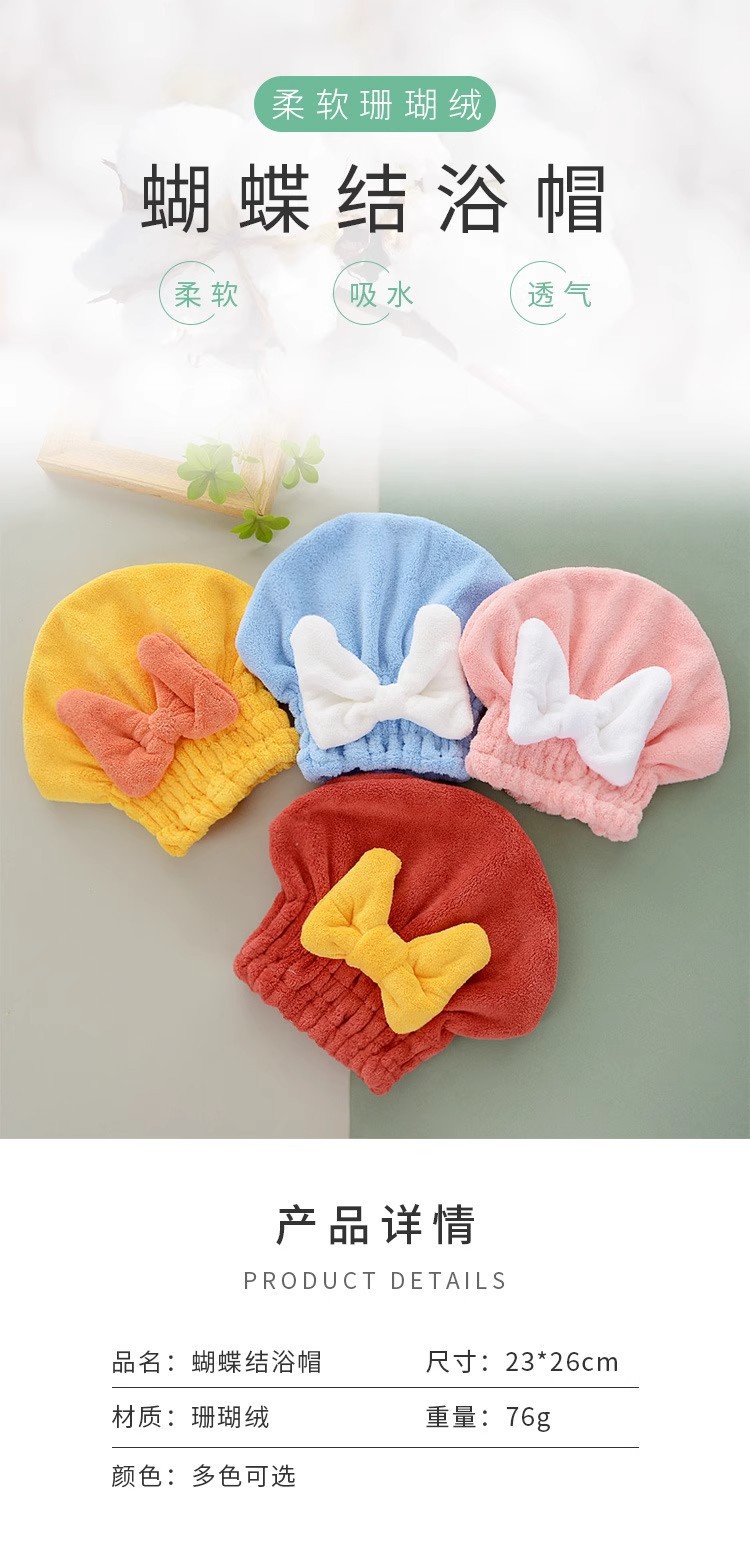 浴帽干发帽女加厚超强吸水速干可爱蝴蝶结珊瑚绒干发巾擦头巾批发
