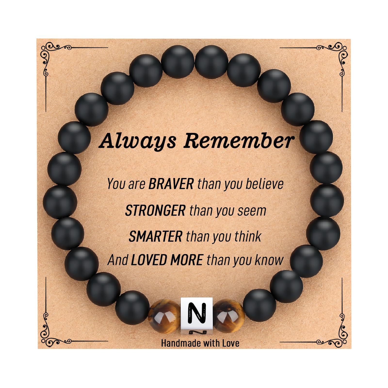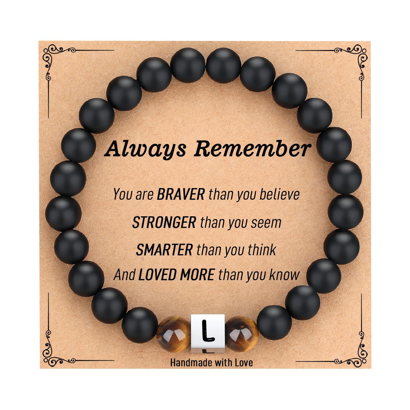 クロスボーダー祝日プレゼントブレスレット虎眼石ステンレス角珠頭文字名前ブレスレット黒艶消しアルファベットブレスレット