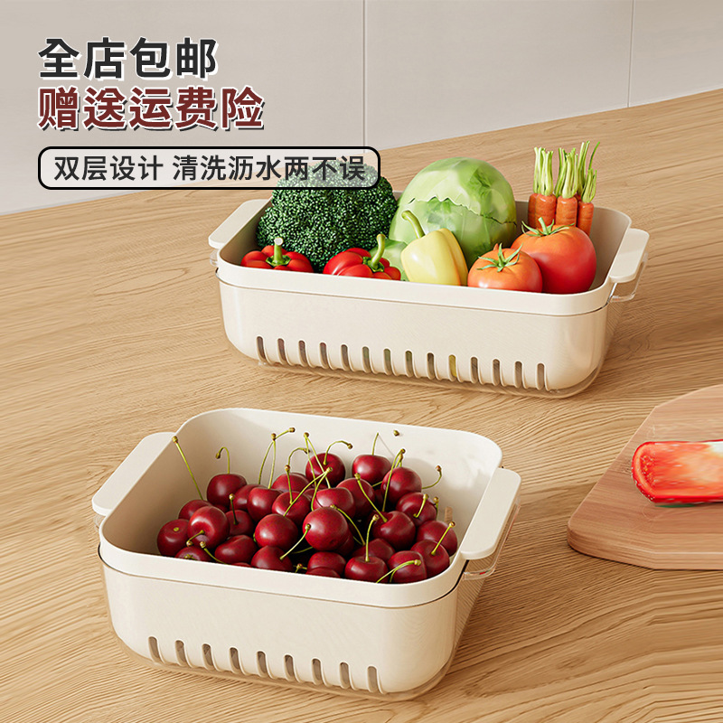 水たまりの2層の水たまりの取っ手の食品級の台所の家庭用の野菜を洗うたらいの高い顔の値の大きいサイズは米を取り出して野菜を洗うかごを洗います