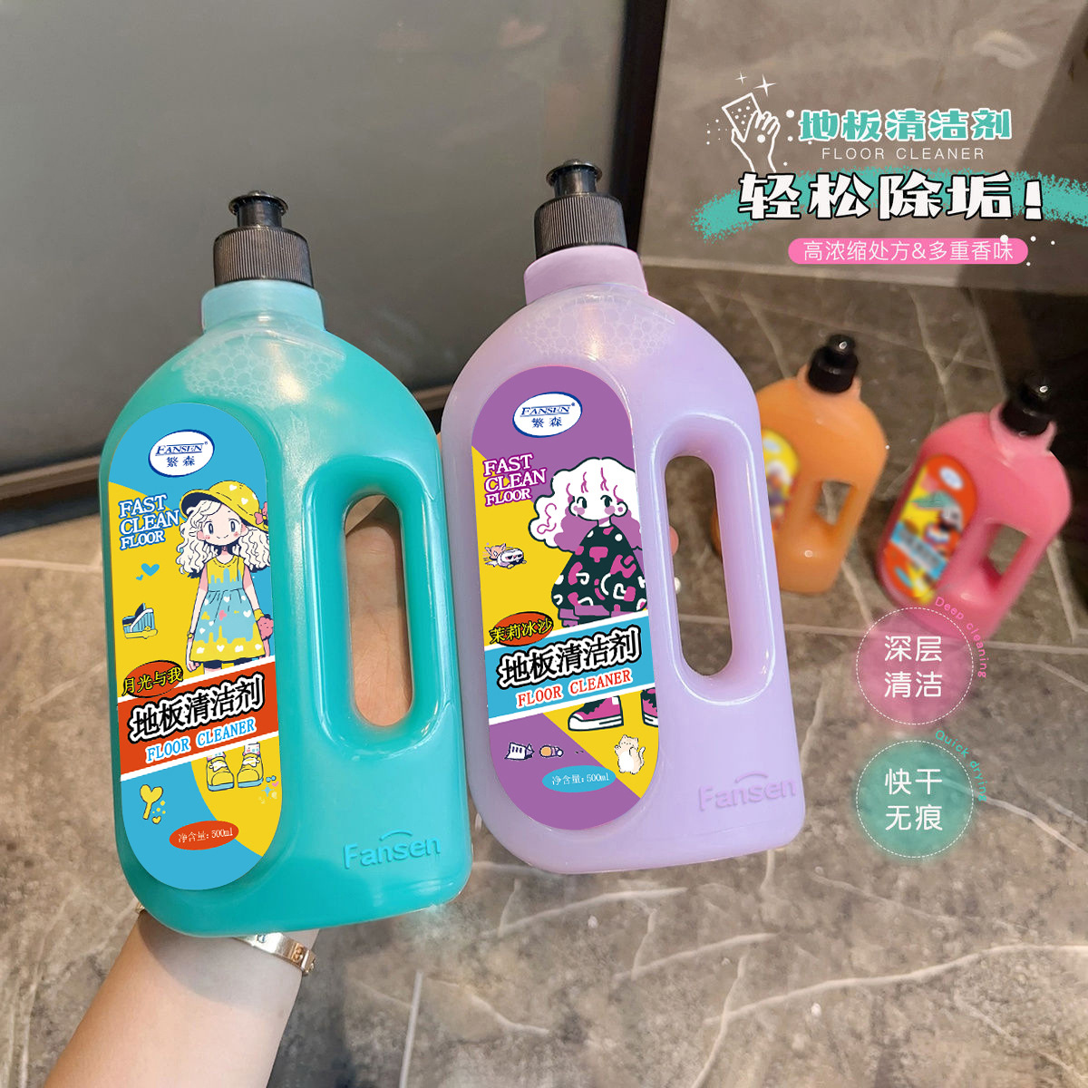床クリーナー、高効率除染、モップ掛け洗浄液、家庭用床タイル、タイル拭き、明るく新鮮、香り長持ち