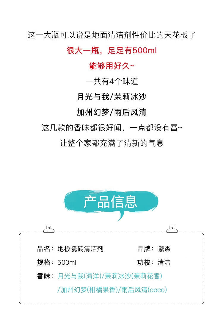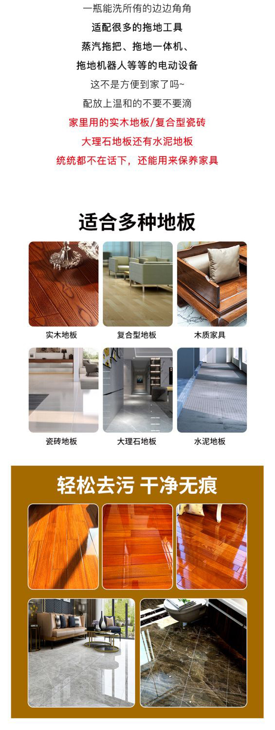 地板清洁剂瓷砖清洁清洗剂杀菌清香拖地专用不留水印强力去污抛光