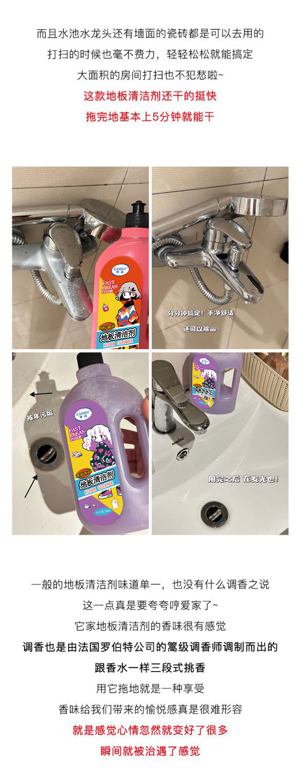 【小紅書同金】床洗剤大理石タイル木床通用速乾清香型光