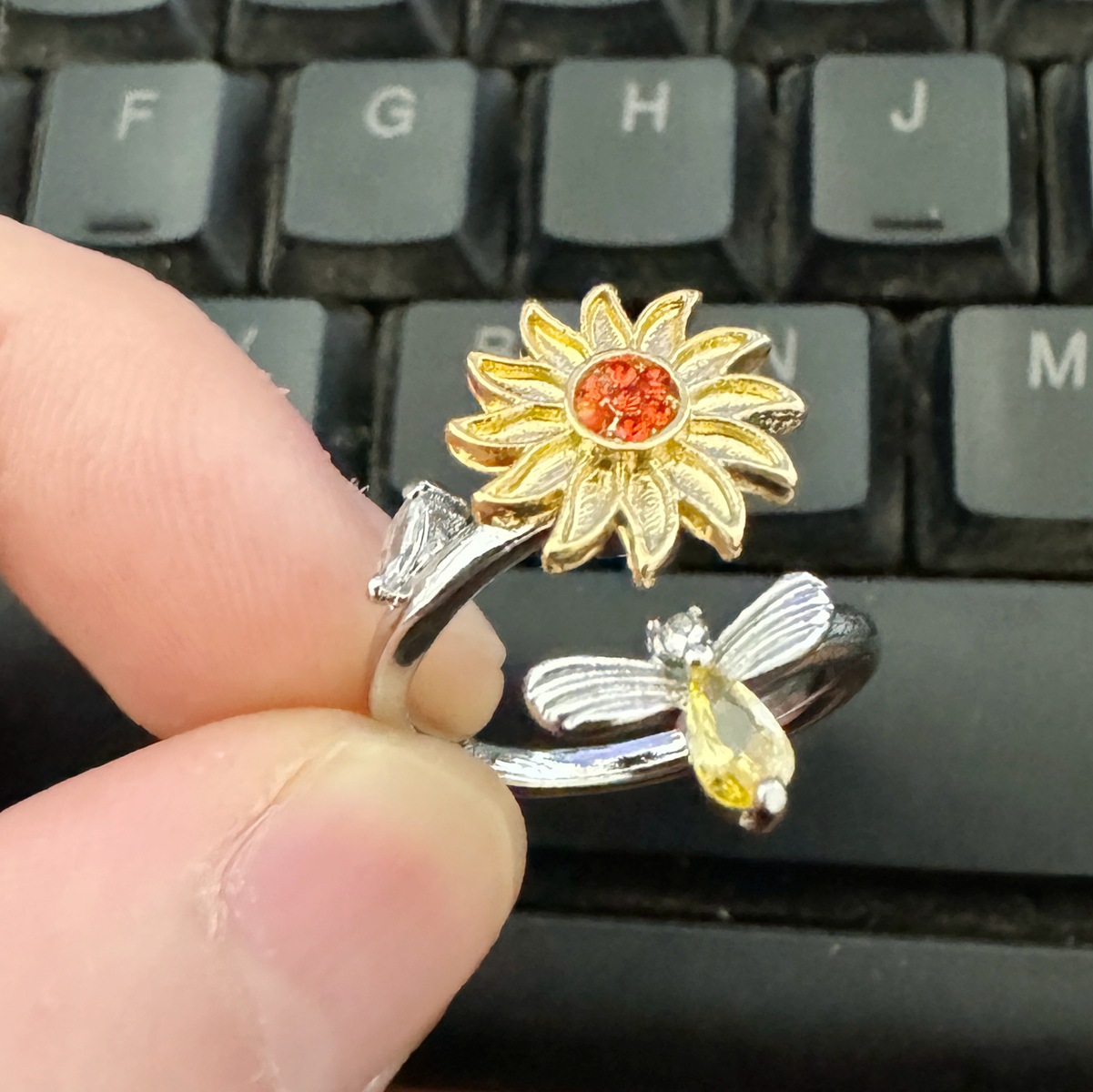 回転不安タイシルバーリング人差し指リングマルチサークル転送ビーズ縁起の良い転送韓国ファッションガールフレンドギフト