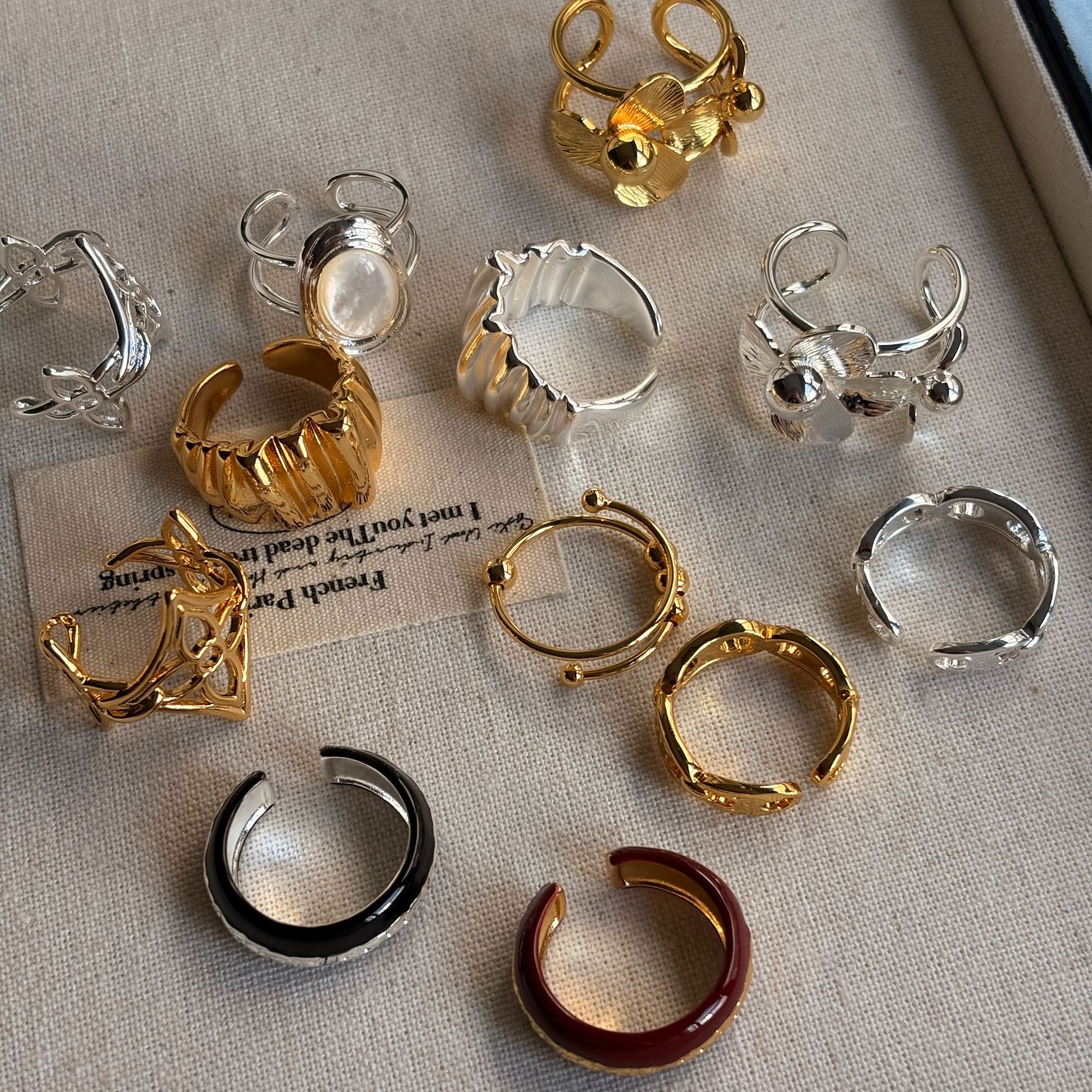 跨境老花欧美法式复古金属戒指重工甜酷ins小众设计高级感食指戒