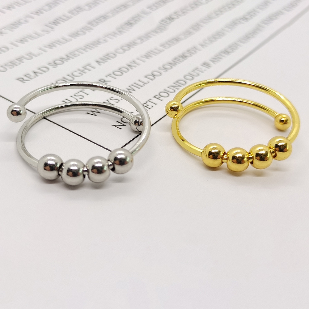 国境を越えた売れ筋のクリエイティブなパーソナライズされた回転ビーズオープンリングステンレス鋼二層回転ビーズ不安解凍リング