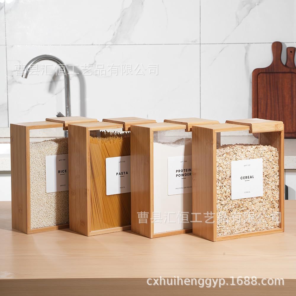竹木スライド式穀物収納ケース厨房食品収納ケース実木シンプル豆類雑穀分配器