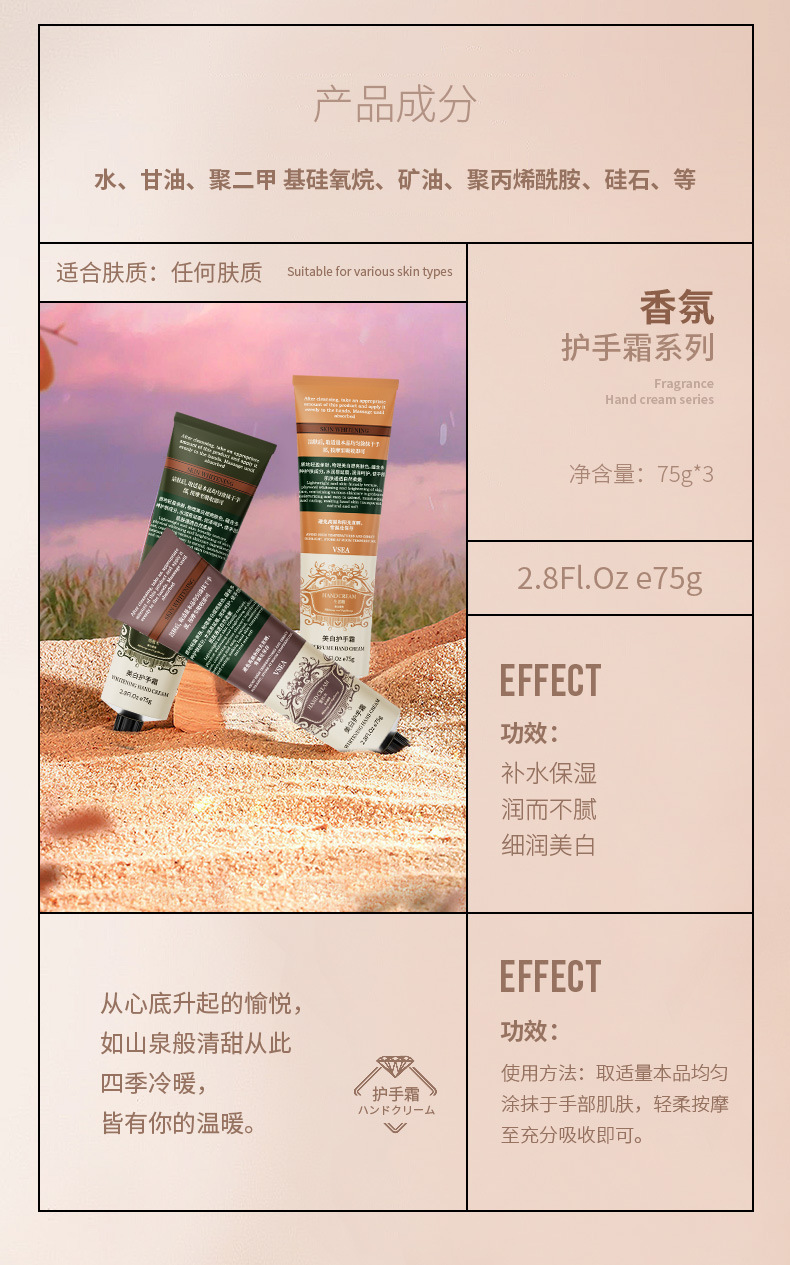 VSEA护手霜女香氛保湿补水便携伴手礼秋冬季嫩白滋润不油腻护手霜