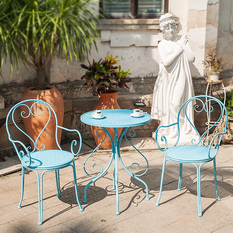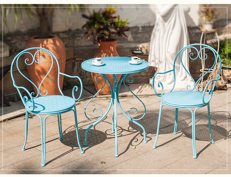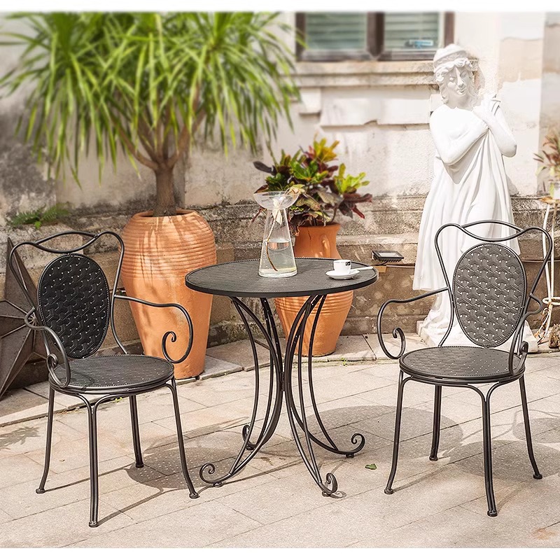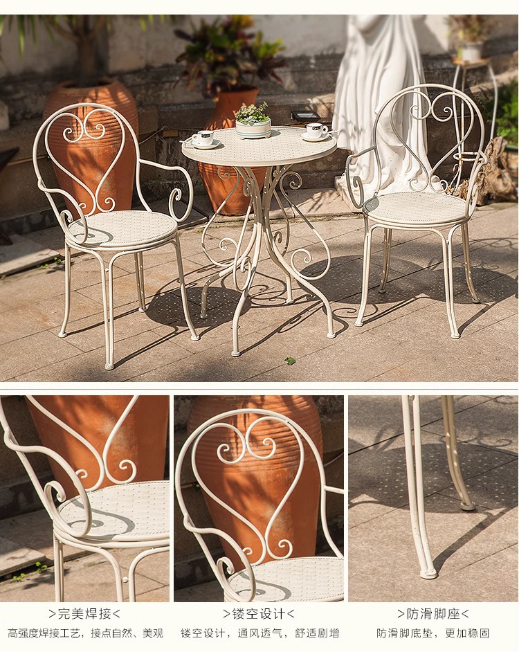 シンプルな鉄芸ベランダのテーブルと椅子の組み合わせ三点セット庭室内レジャーカフェのミルクティー店のお茶のテーブル