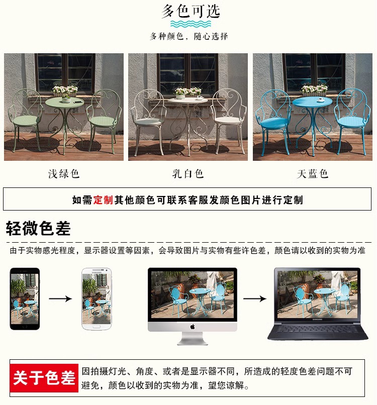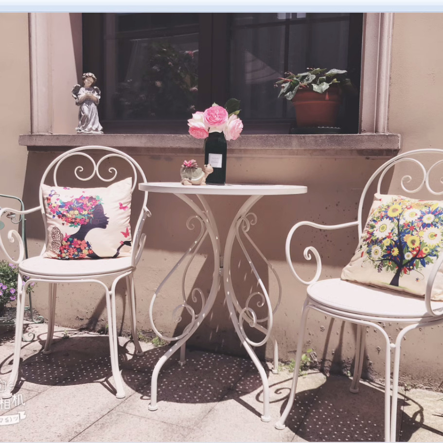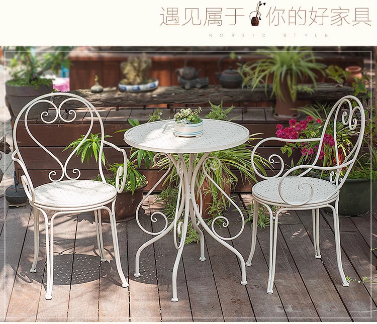 ガーデンバルコニー屋外テーブルと椅子カジュアルシンプルドーパミン露天庭ミルクティーカフェ飲食テーブルと椅子セット