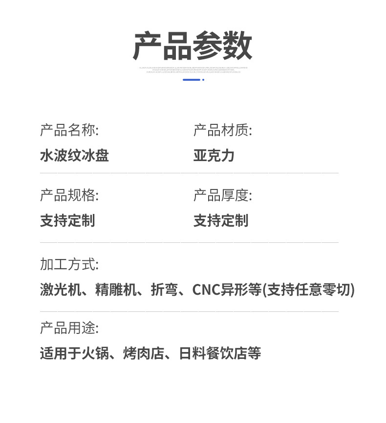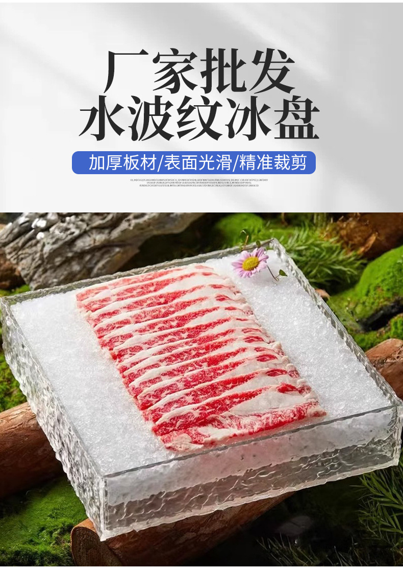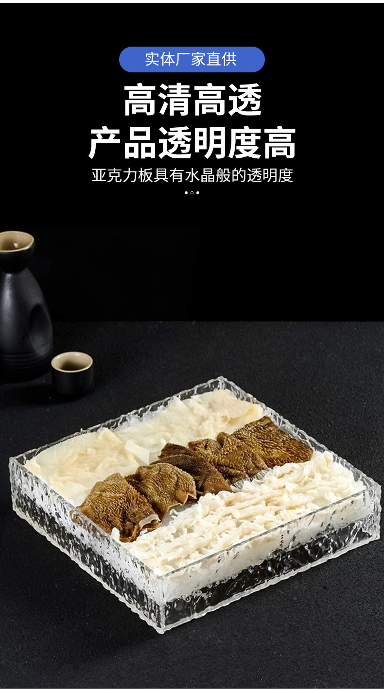 アクリル水波模様の食器箱と牛肉皿、和風創作焼肉料理、刺身、氷皿、海鮮盛り合わせ、透明