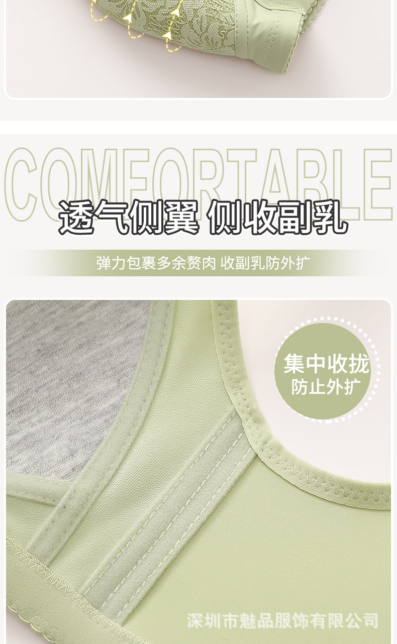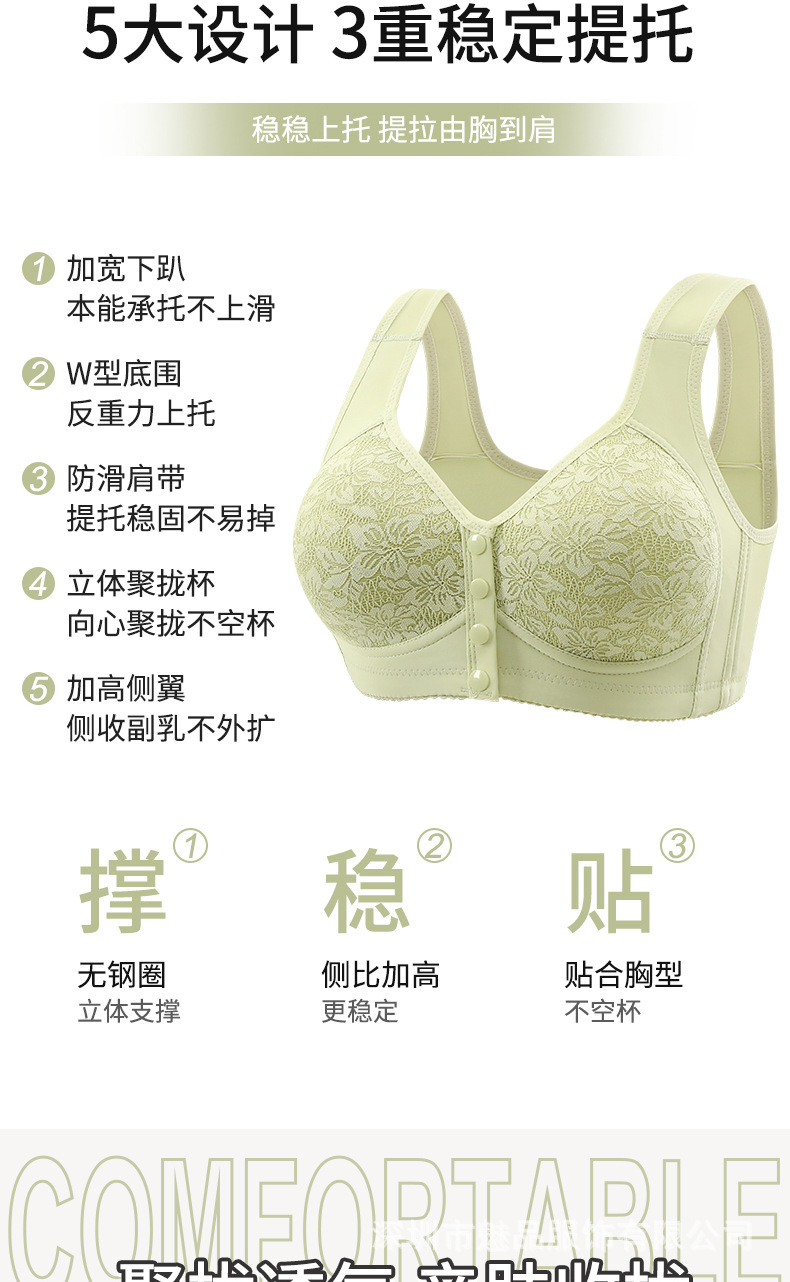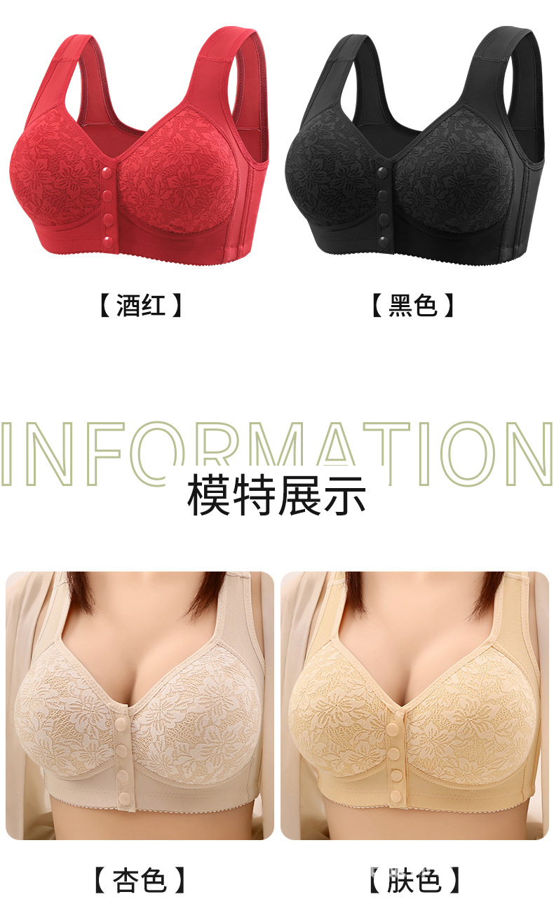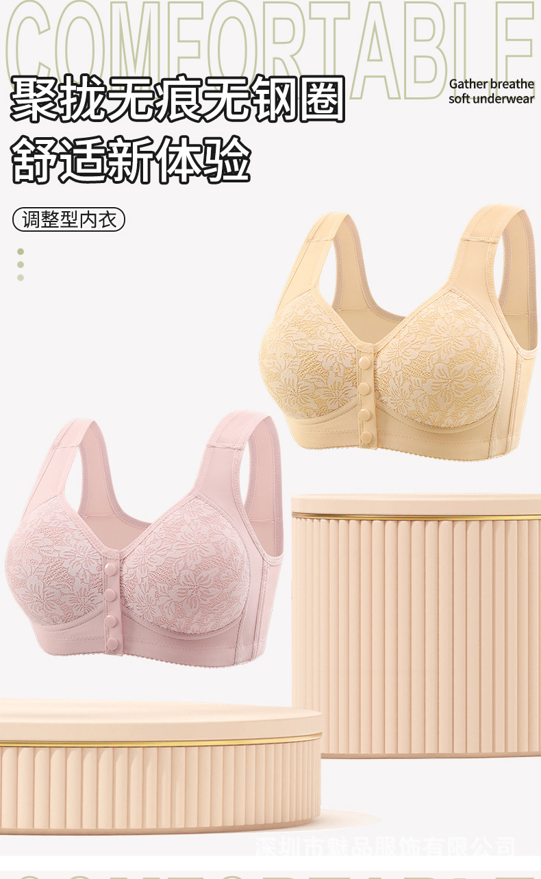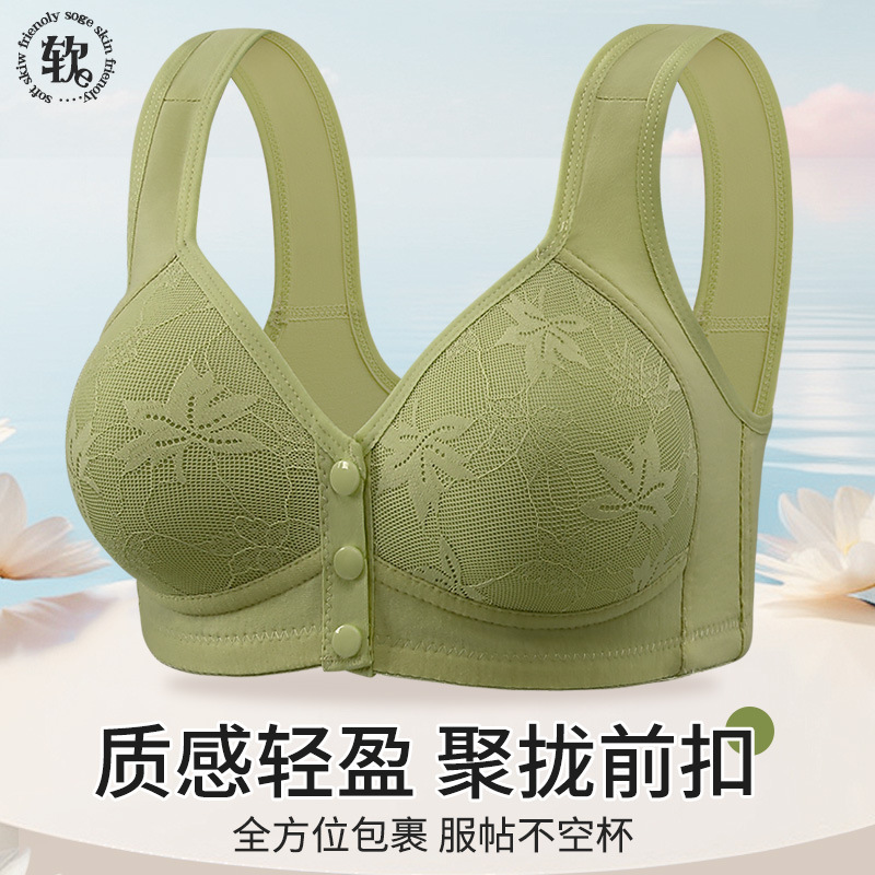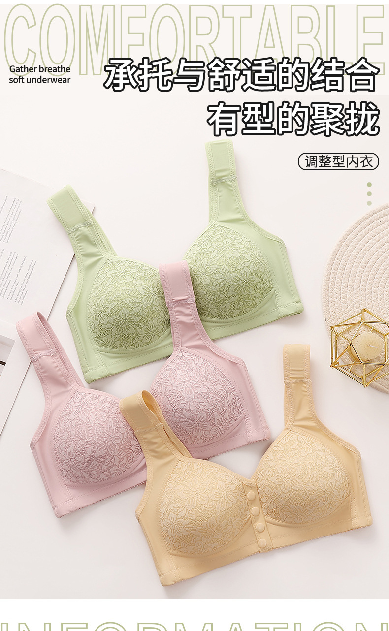 新型固定カップ前開きボタンブラジャー中高齢ママ美背まとめて垂れ下がり防止スチールリングなしレディースブラジャー