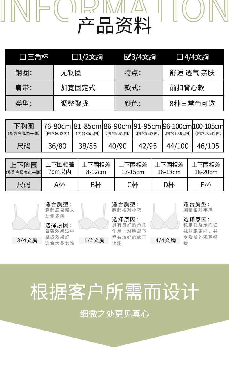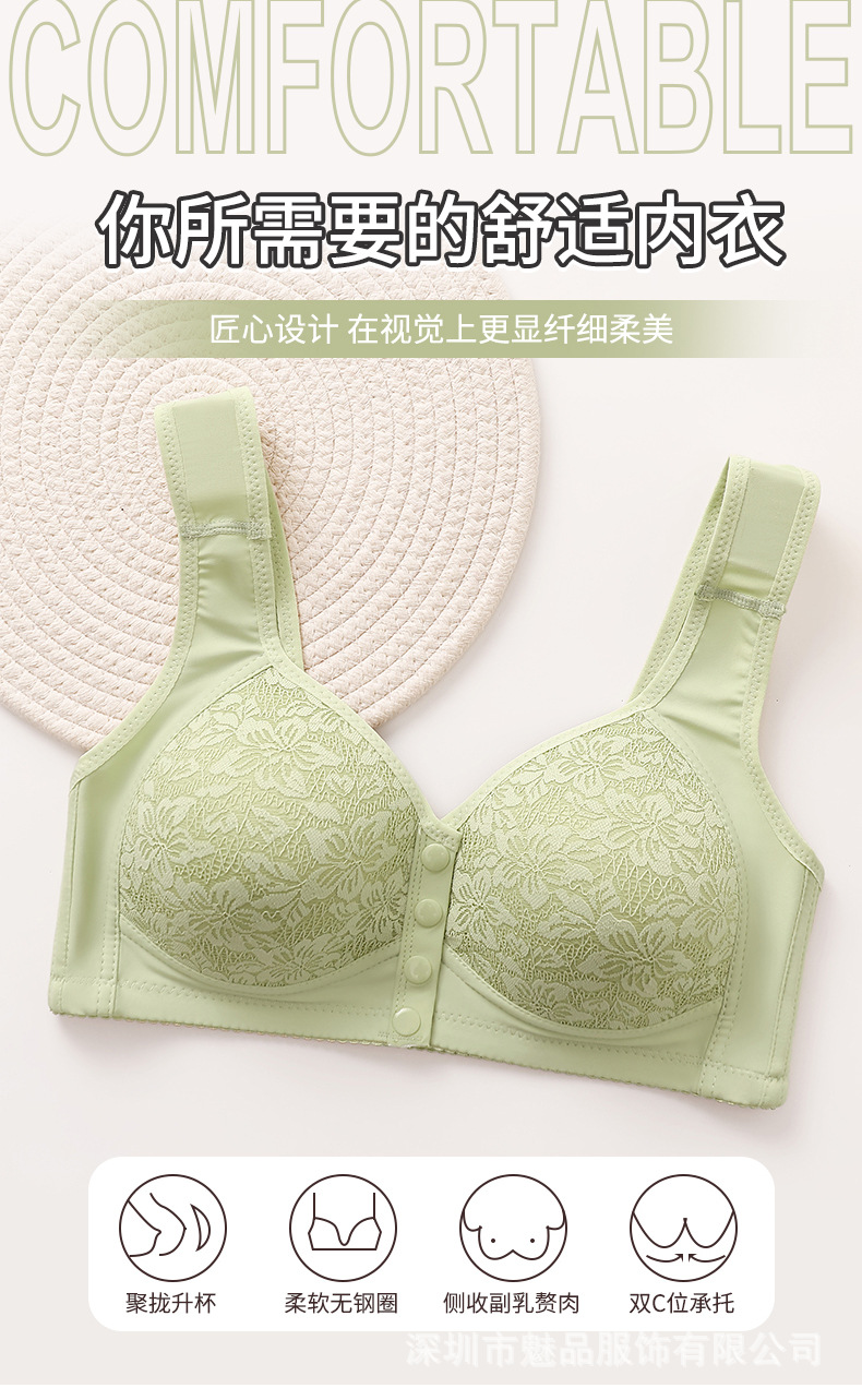 クロスボーダー固定カップ前開きボタンママ中高年下着レディース大きいサイズスチールリングなしブラジャー